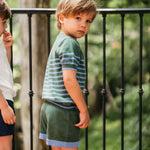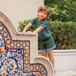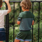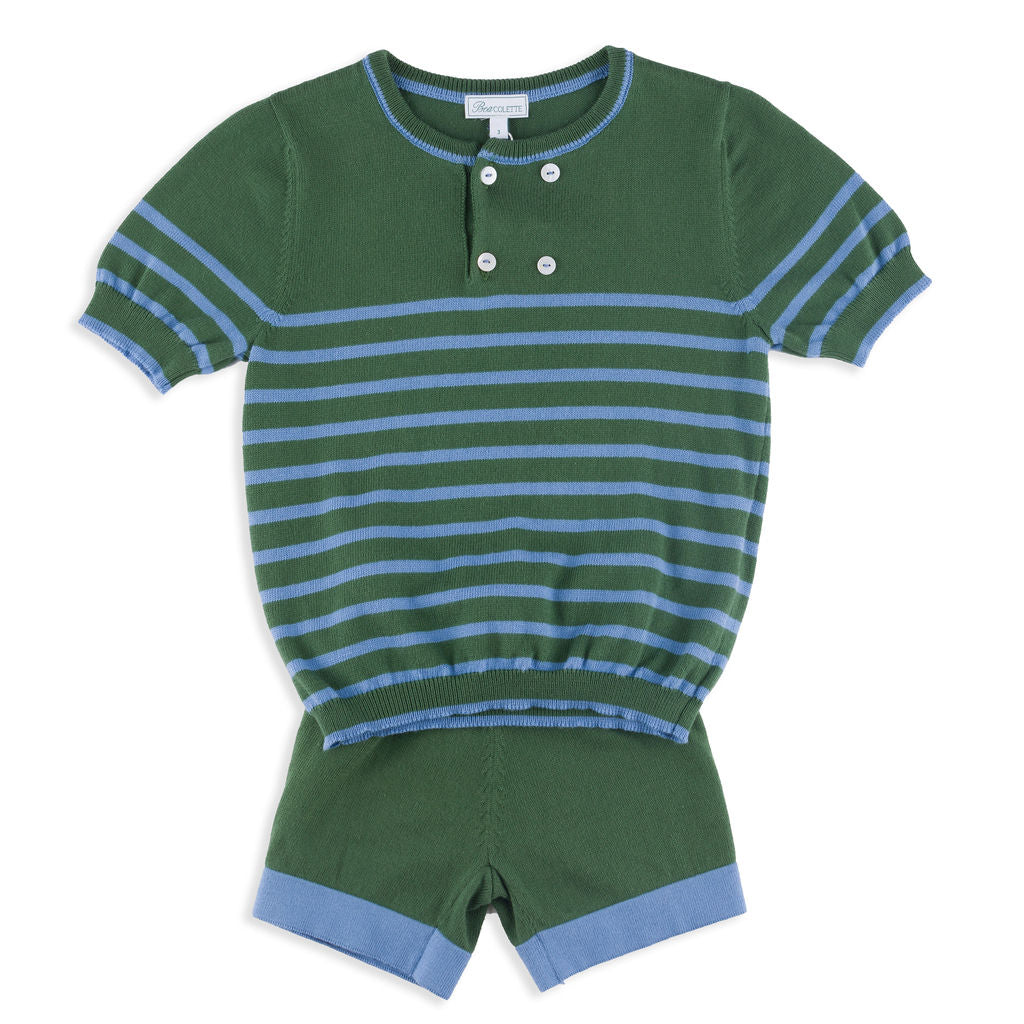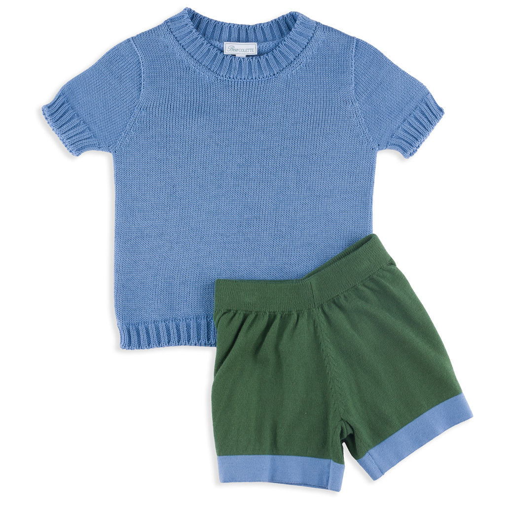 Moritz Knit Shirt + Shorts Set in Hunter Green & French Blue