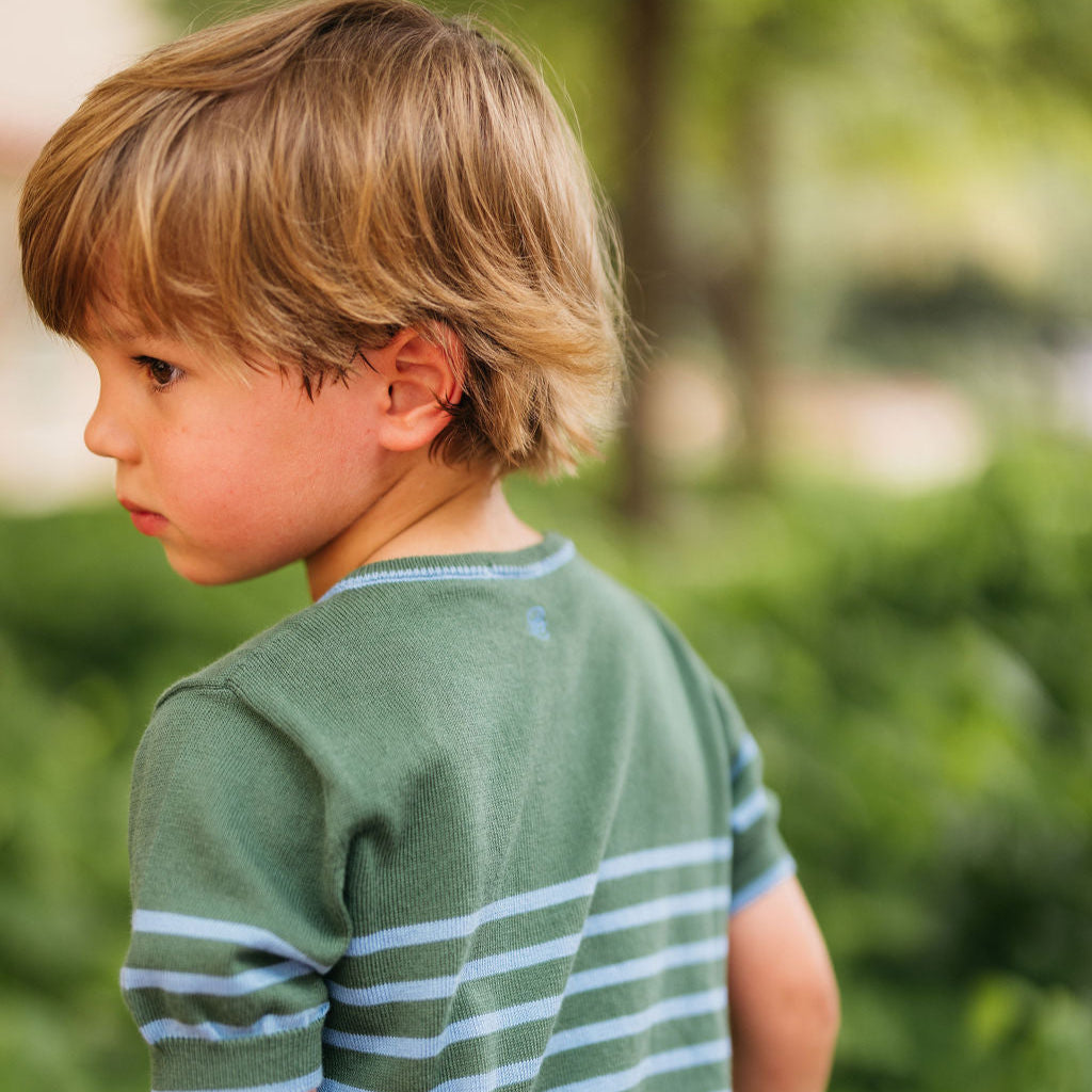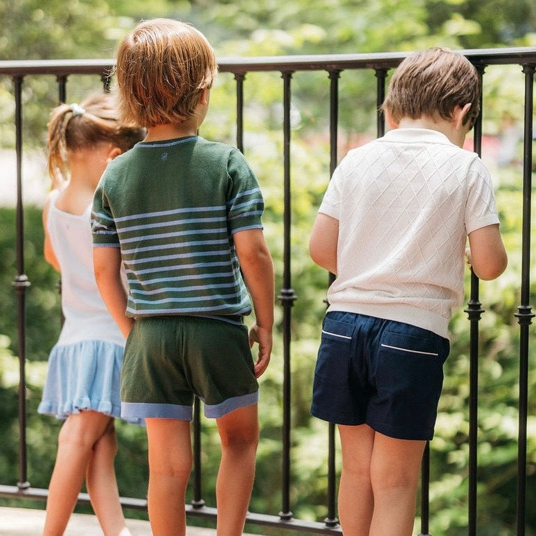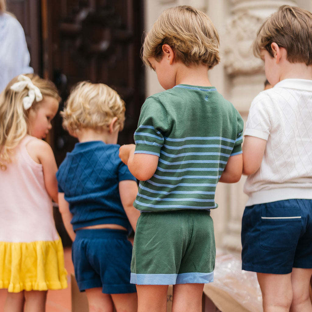 Fit & Design Details: The Moritz runs true to US sizing. Perfect for any occasion, the Moritz transitions effortlessly from playground to dinner, pairing well with sneakers or loafers. The classic, crew-cut sweater and shorts can mix and match with wardrobe staples or Bea Colette favorites like the Ravello cardigan or Montreux Navy Polo. Lightweight yet soft, it’s ideal for summer evenings or layered during the fall. Inspired by founder Meghan’s favorite knit sets for traveling, the Moritz combines timeless style and comfort. True to US sizing, it’s available for ages 12 months to 4 years. Every design includes a subtly embroidered BC logo, adding a discreet, playful touch. Each piece is handmade by artisans, so no two products will be exactly alike, adding to their unique charm.