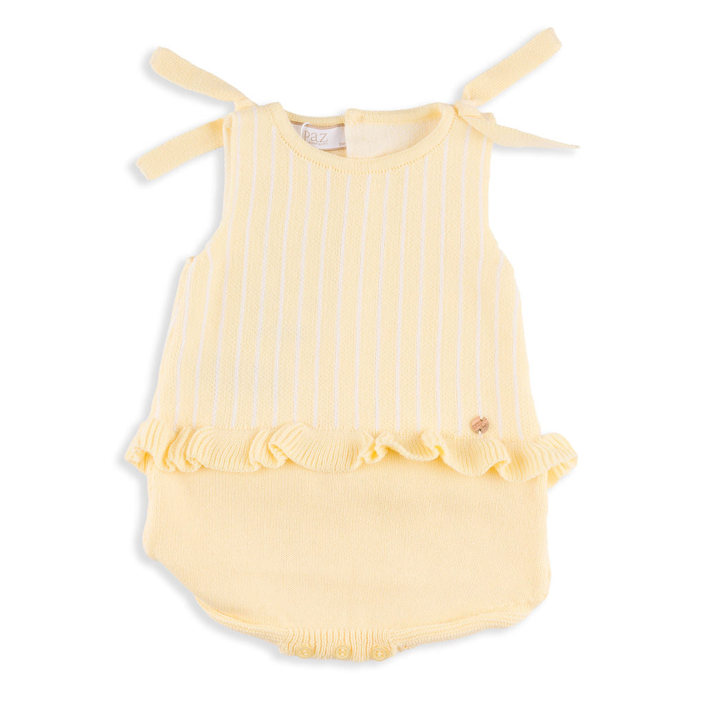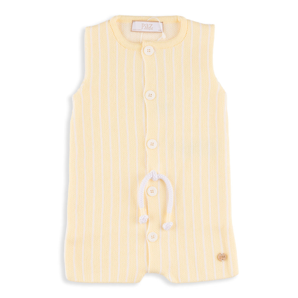 Duncan Knit Newborn Stripe Romper in Lemon Yellow
