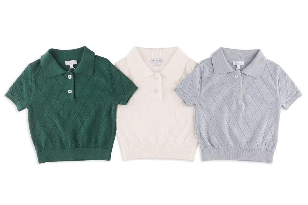 Montreux Kids Diamond Knit Polo in Ivory