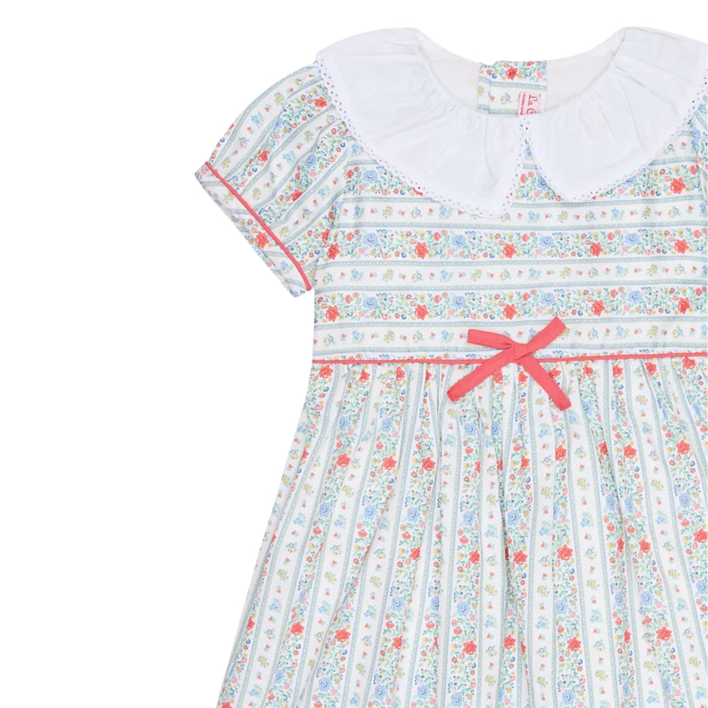 Lana Girl Dress in Ivory Rose Stripe
