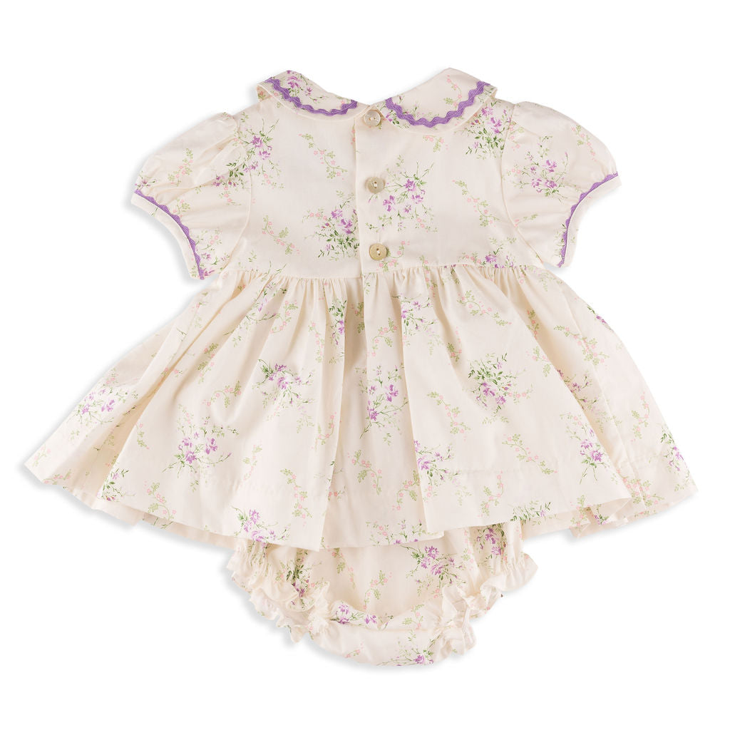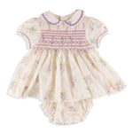 Mia Handsmocked Purple Floral Baby Dress with Bloomers