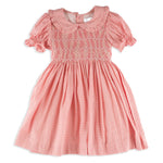 We are proud to be Lallie London's exclusive Texas retailer. Lallie is known for their traditional hand smocked children's clothes. The Alexis Pink dress is designed to infuse elegance and comfort into every little girl's wardrobe. Highlighting a playful candy-stripe pattern, the Alexis dress exudes a playful yet sophisticated allure. Its peter pan collar adds a touch of whimsy, framing the neckline in a beautiful manner.