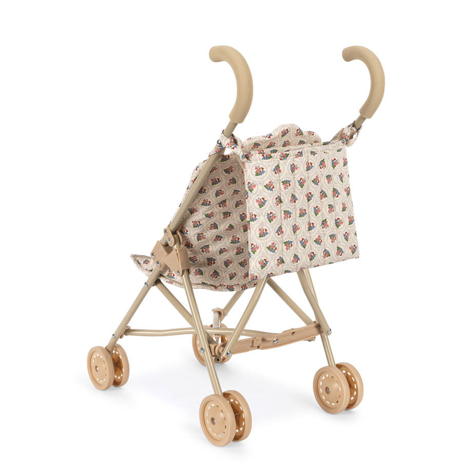 Doll stroller designed with a harness, carriage bag, and double wheels on all four legs for extra stability. Features removable fabric. Comes fully assembled and is easy to fold and store. The frame is made of iron with soft and spongy handles that makes it comfortable to walk around with. H: 56 x W: 27 x D: 46 cm 3 yr + WARNING! CHOKING HAZARD - Small parts. Not suitable for children under 3 years. CE-certified