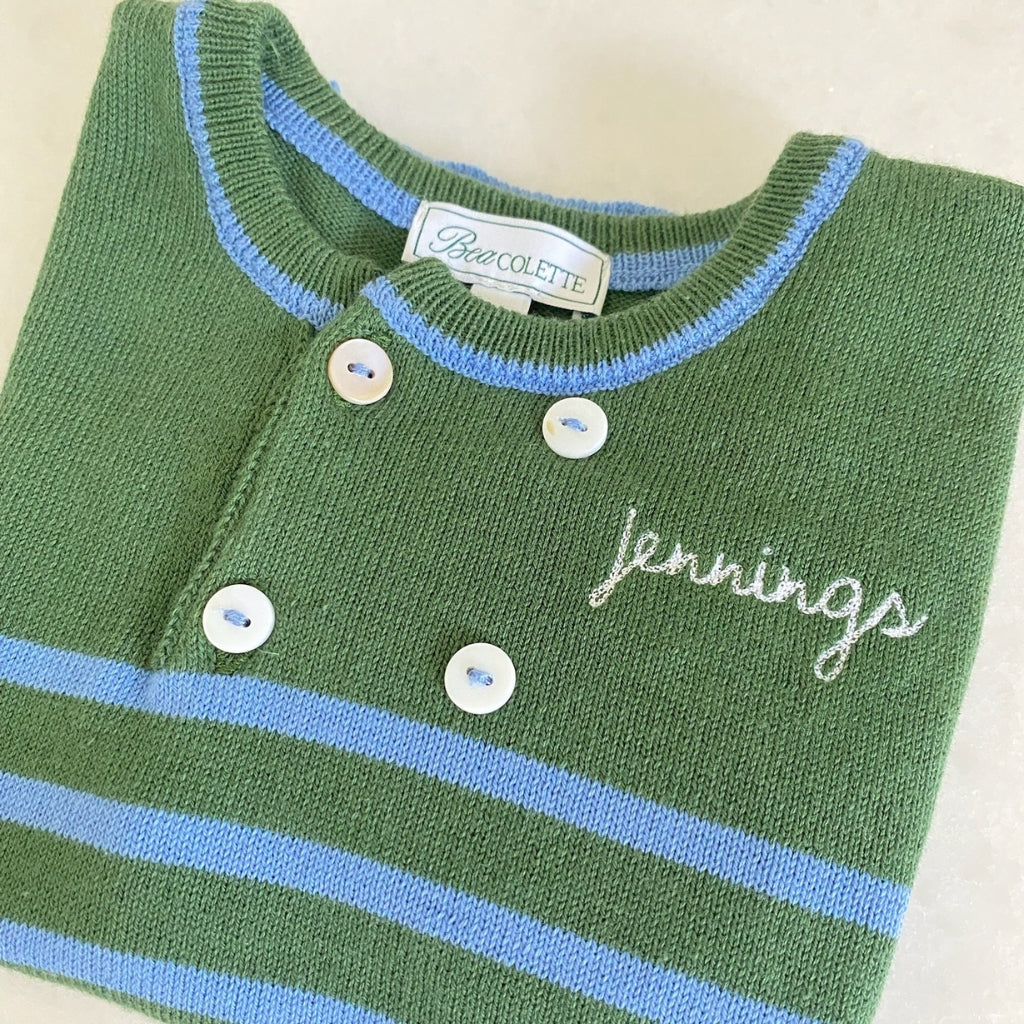 Lucerne Sweater + Jogger Set in Greenwich Green & Celestial Blue Stripe