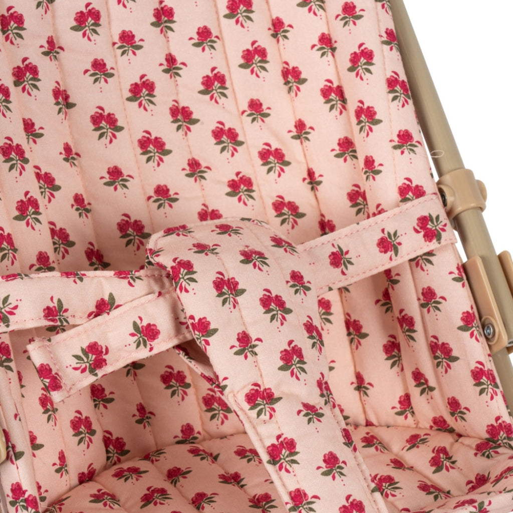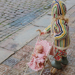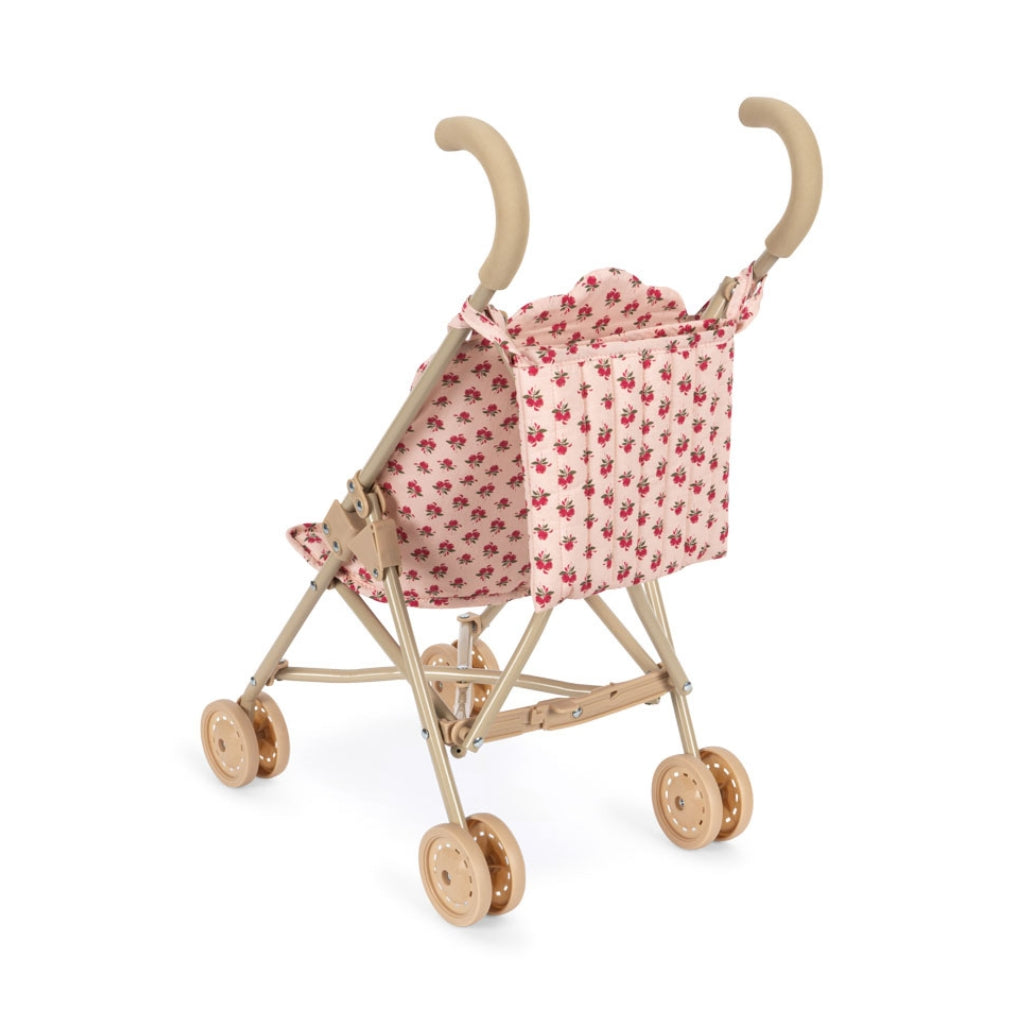 Doll stroller designed with a harness, carriage bag, and double wheels on all four legs for extra stability. Features removable fabric. Comes fully assembled and is easy to fold and store. The frame is made of iron with soft and spongy handles that makes it comfortable to walk around with. H: 56 x W: 27 x D: 46 cm 3 yr + WARNING! CHOKING HAZARD - Small parts. Not suitable for children under 3 years. CE-certified