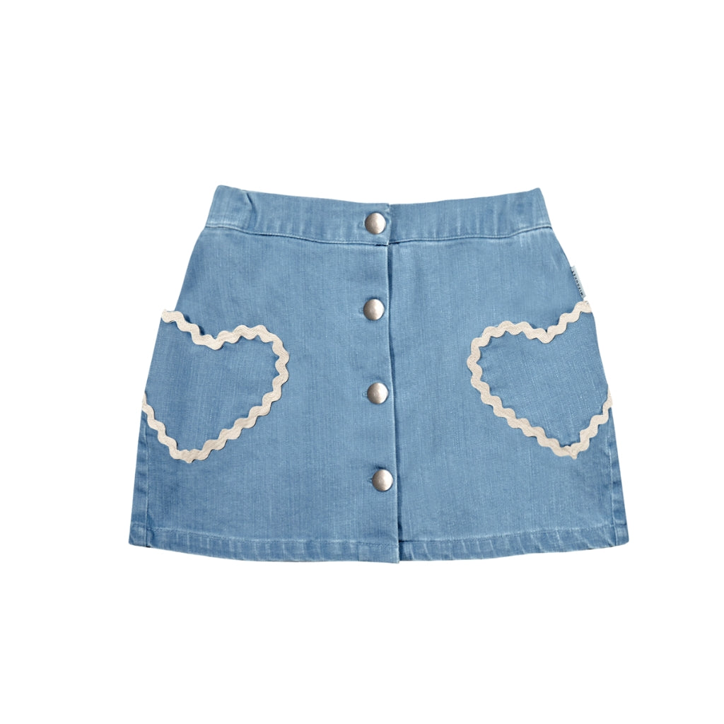 Louise Denim Skirt with Ric Rac Heart Detail