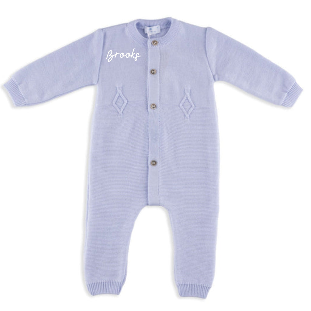 Bebe Sea Blue Pointelle Heart Collared Footed Onesie