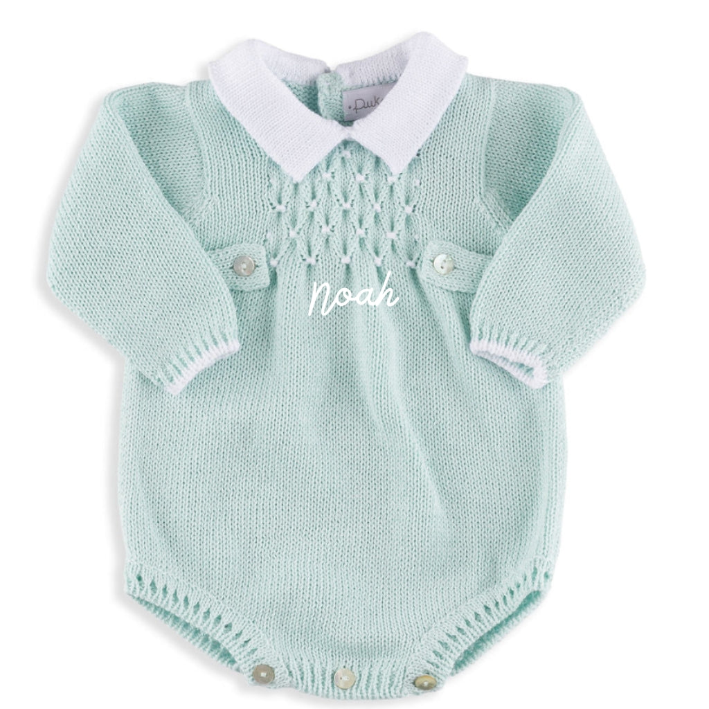 Alex Mint Footed Baby Onesie with Peter Pan Collar