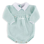Gorgeous knitted sage romper with a collar -- it is a classic silhouette that will be a staple in any baby's closet. True to the Bea Colette brand DNA, we love that this romper achieves both polished and practical. This romper runs true to size.