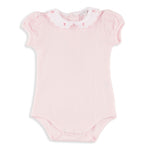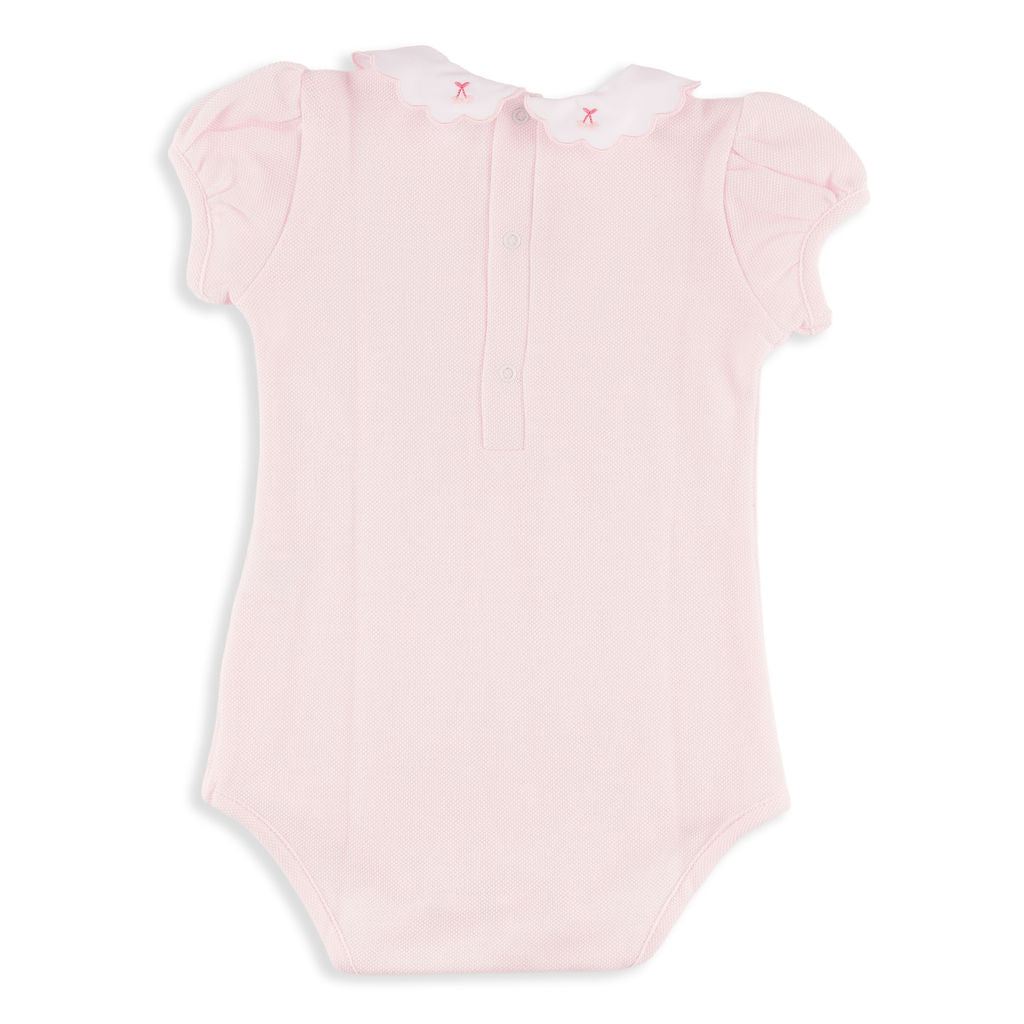 Ava Pink Romper Bodysuit with Cherry Embroidered Collar