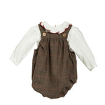 The Maroon Baby Romper feature a classic herringbone pattern with adjustable frog-style straps for a secure and comfortable fit. Designed with timeless charm, they add a touch of sophistication to your little one’s outfit.