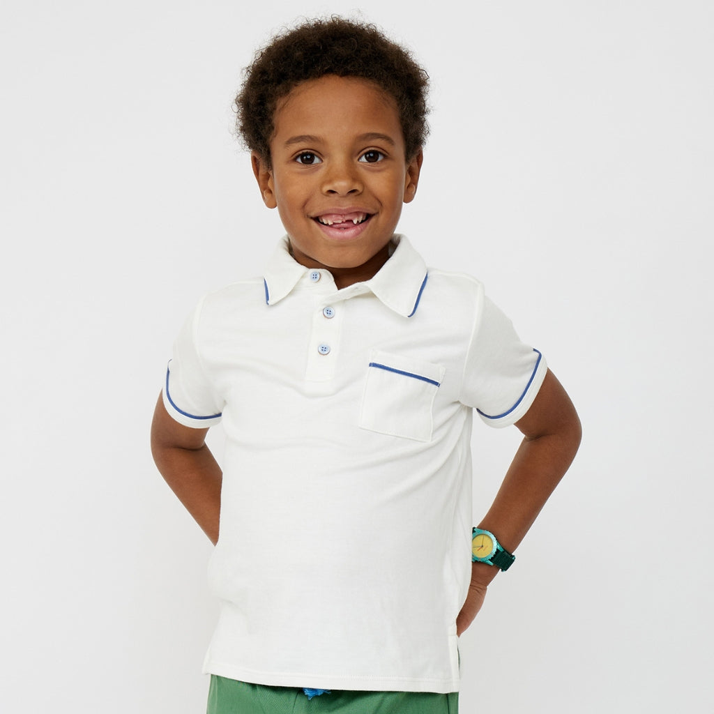 Made with Oso's soft and stretchy Float Jersey™, this short-sleeve polo shirt features a piped collar and chest pocket and custom stacked buttons for little fingers. A wear-anywhere essential that always look polished from parties to the playground and everywhere in between.