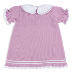 The Violet Knit Dress in Lavender features a beautifully soft knit that drapes gently for an effortlessly sweet look. Its delicate lavender hue adds a touch of whimsy, making it perfect for cozy days and picture-perfect moments.
