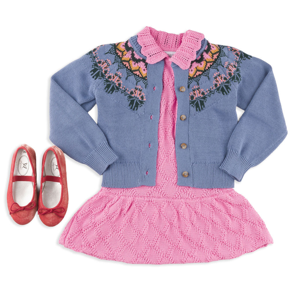 Fit & Design Details: The Primrose runs true to US sizing and even a bit long in length; you do not need to size up In this dress. The size 8-10 leans closer to a girls size 10. Available in azalea pink, mint and cornflower blue, the Primrose is suitable for year-round wear on  girls 2 to 10 years. Delicate in design with its diamond pointelle knit, scalloped collar, and puff sleeves, this dress strikes the perfect balance of sweetness and sophistication, effortlessly pairing with everything from sandals to Mary Janes to ballet flats to sneakers. Each piece is handmade by artisans, so no two products will be exactly alike, adding to their unique charm.