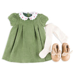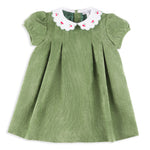 Dorian Corduroy Dress Green with Scallop Cherry Collar