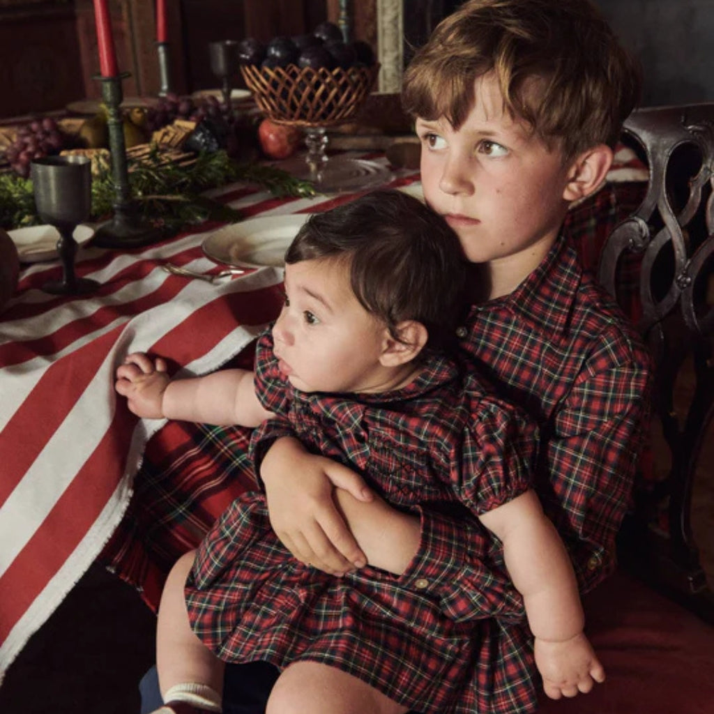 Arcadia Baby Hand Smocked Set in Red Tartan