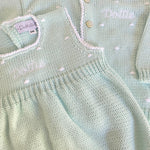 Emory Mint Knitted Cardigan with Hand Embroidered White Dots