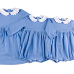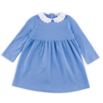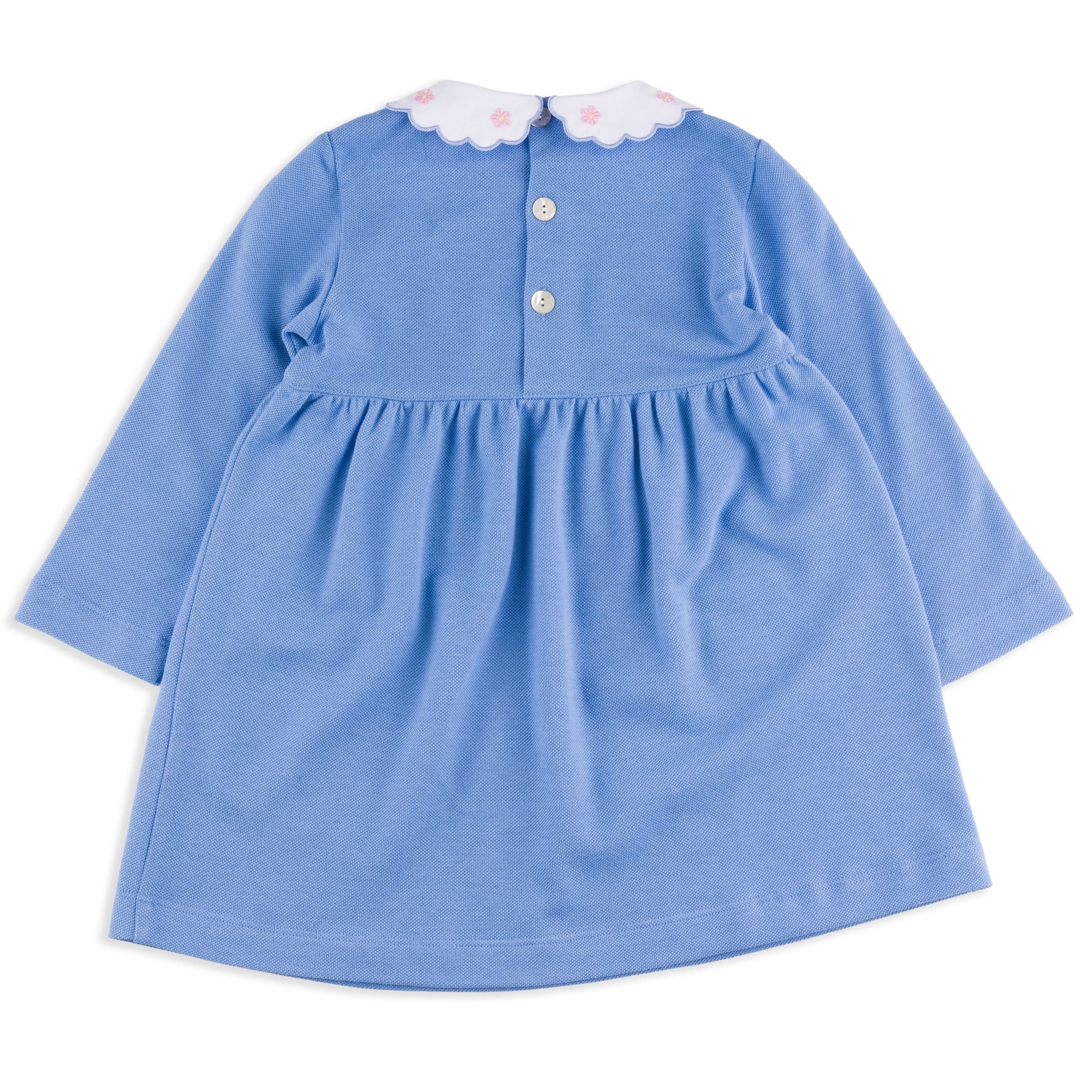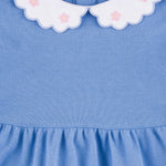Sylvie Blue Pique Dress with Pink Daisy Embroidered Collar