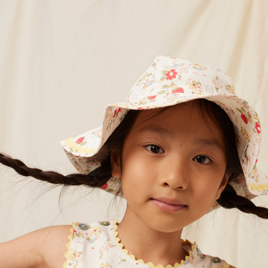 The Annice Baby Sunhat in Strawberry Field is a charming warm-weather staple, adorned with a playful floral print. Soft and lightweight, it’s designed to keep little ones cool and protected on sunny days. Composition: 100% cotton.