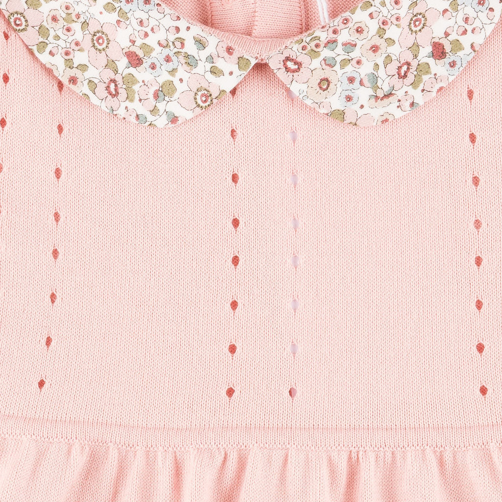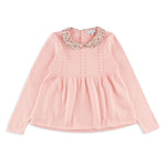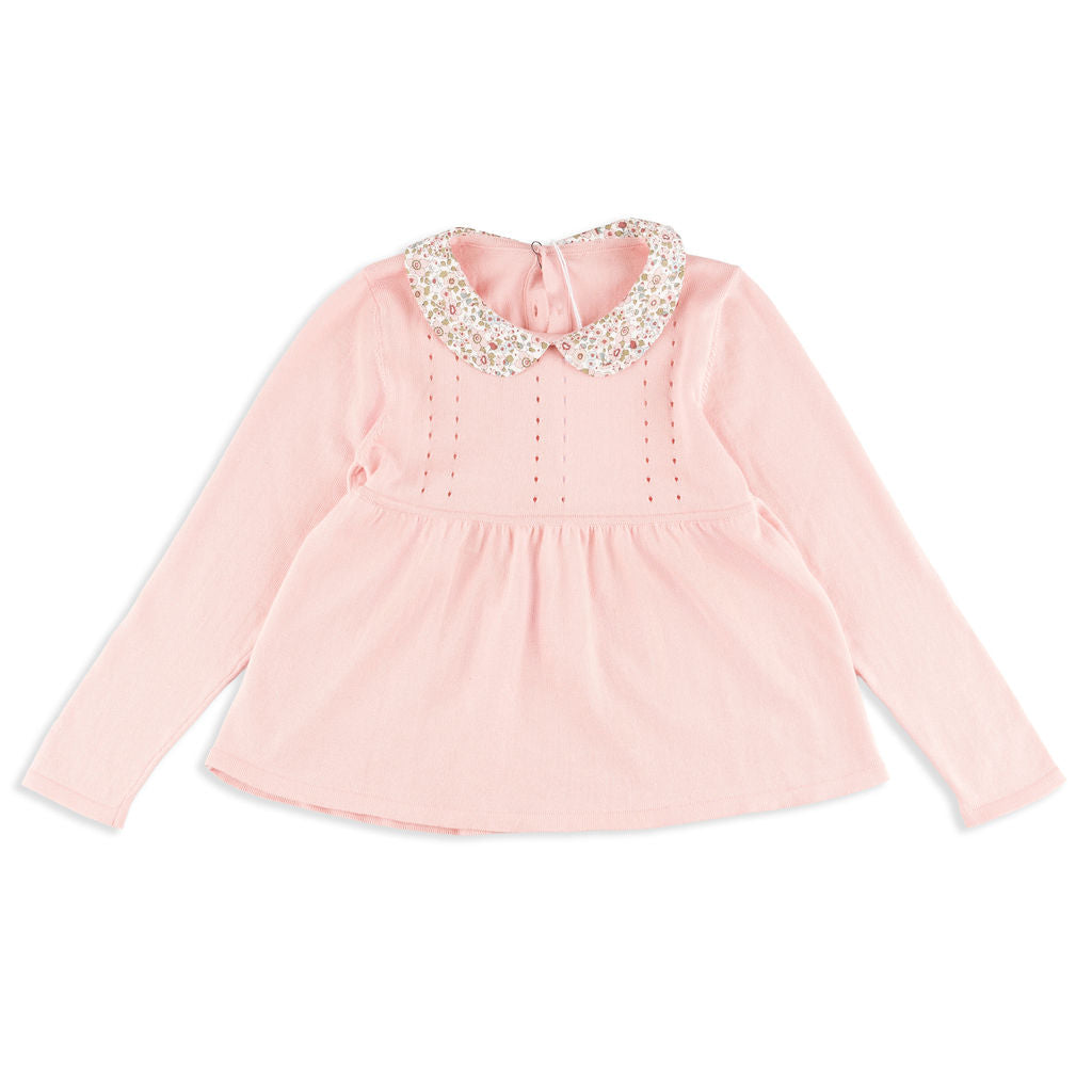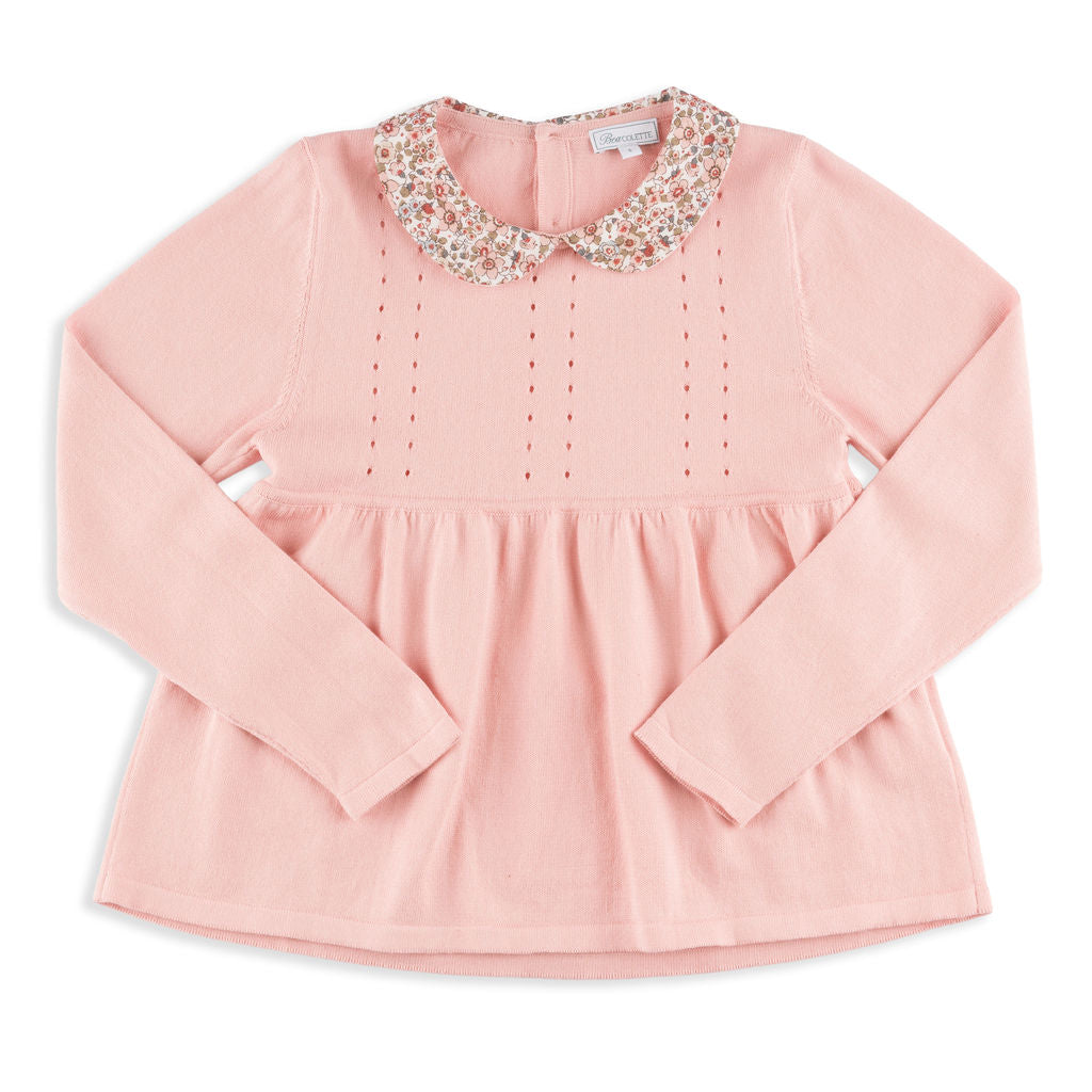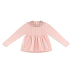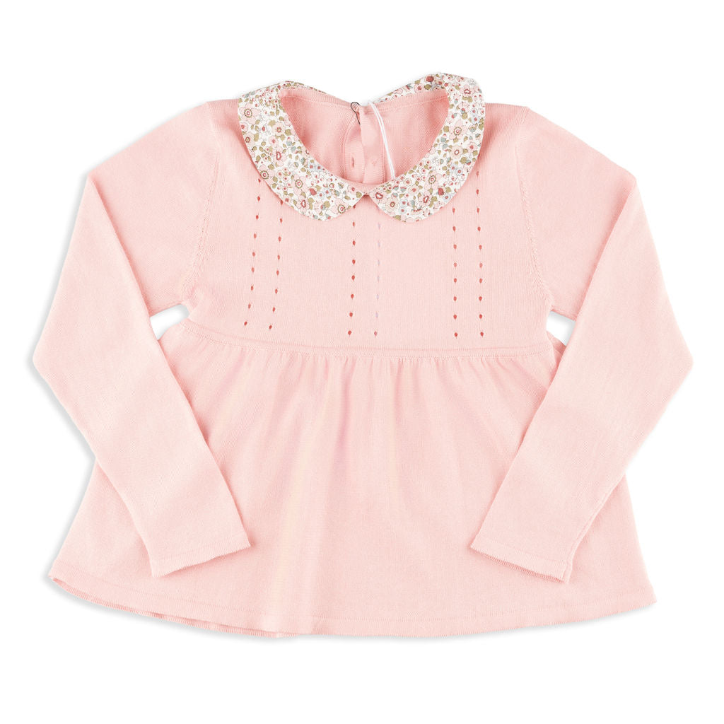Meet the Belmonte Set: Sweet, soft, and thoughtfully designed, this two-piece knit set is crafted for all-day comfort with an elevated, timeless feel. The long-sleeve top features delicate pointelle detailing and a gently flared silhouette, finished with a charming floral Peter Pan collar for a polished touch. Paired with matching slim-fit pants, the Belmonte is an instant outfit—easy for everyday play yet refined enough for special moments. Available in soft pink and butter yellow, it brings warmth, softness, and classic European-inspired charm to your little one’s wardrobe.