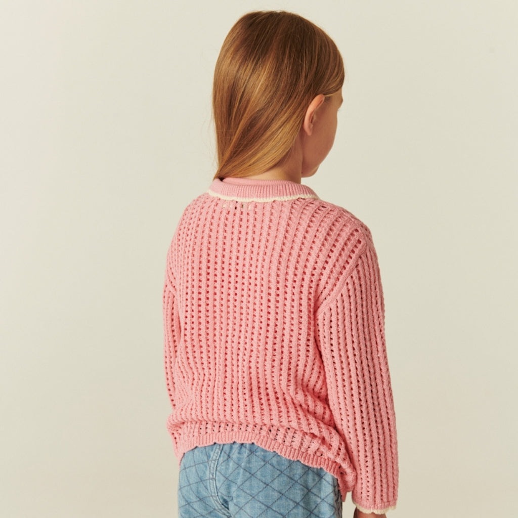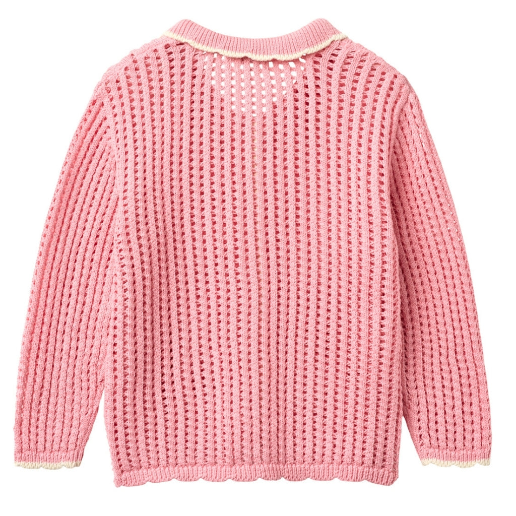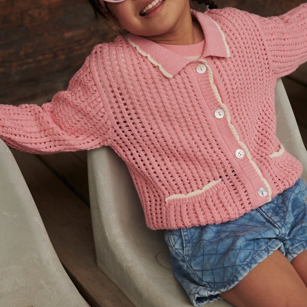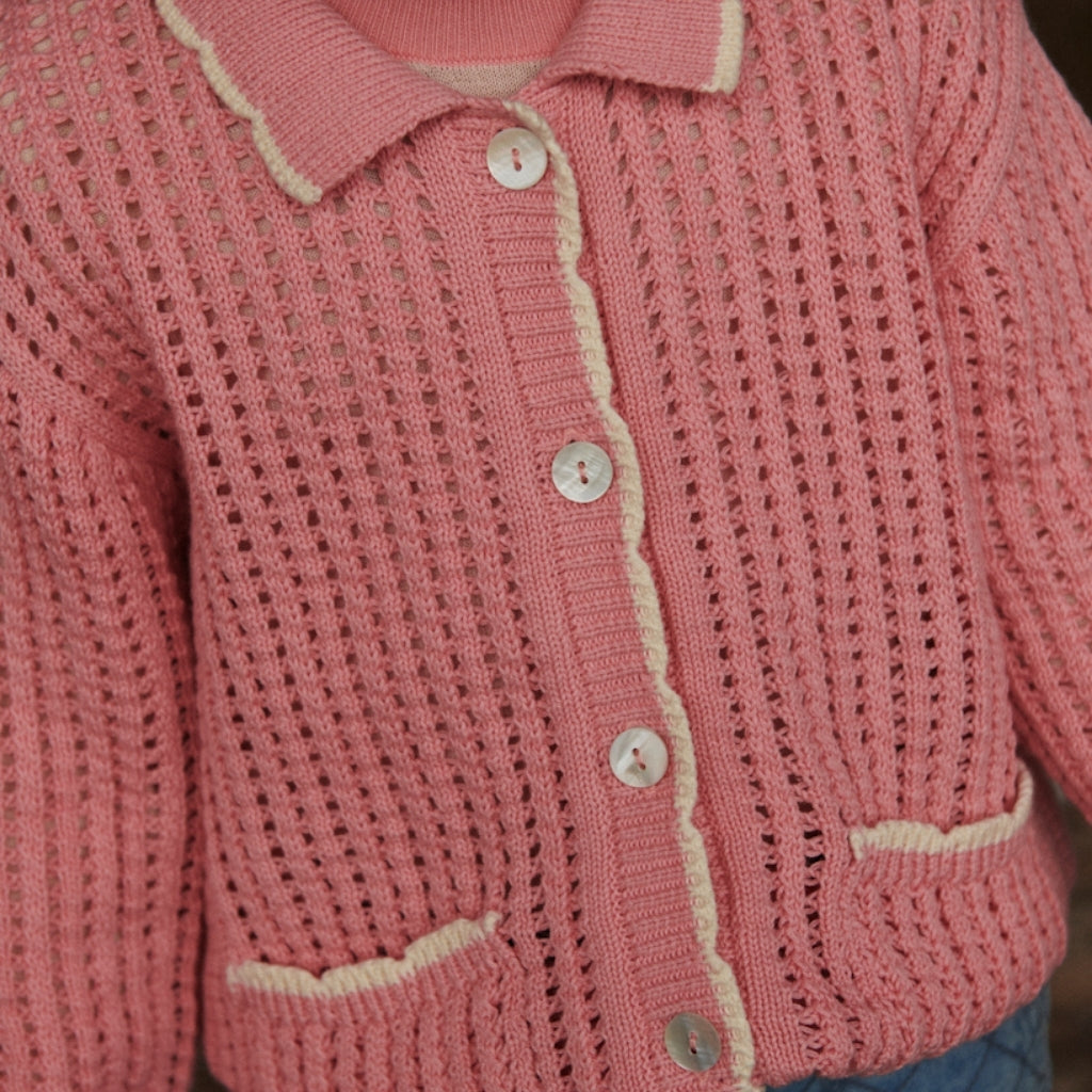 Pink Crochet Cardigan with Cream Detailing