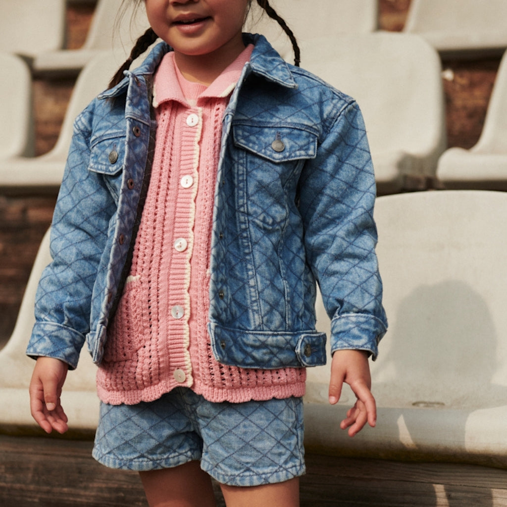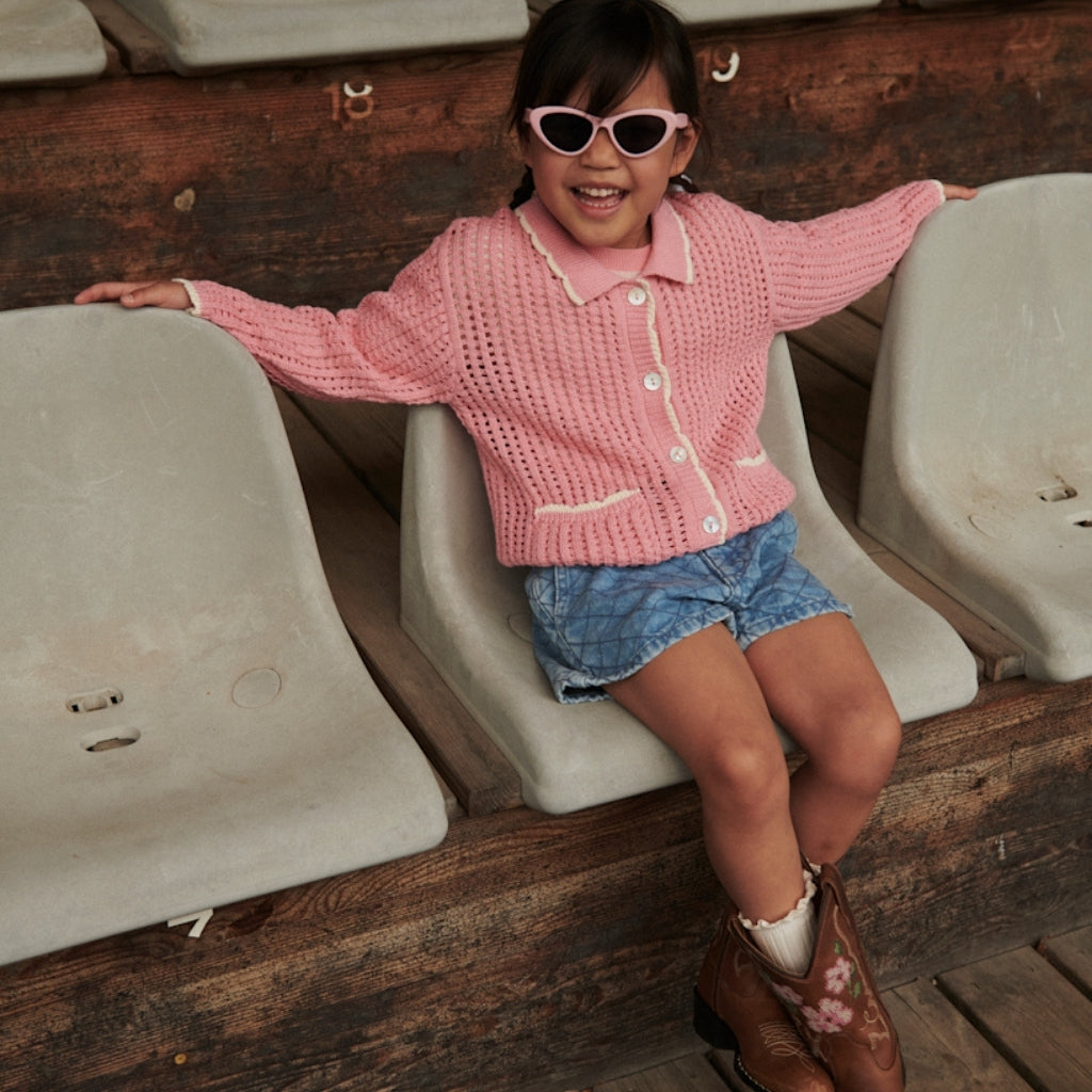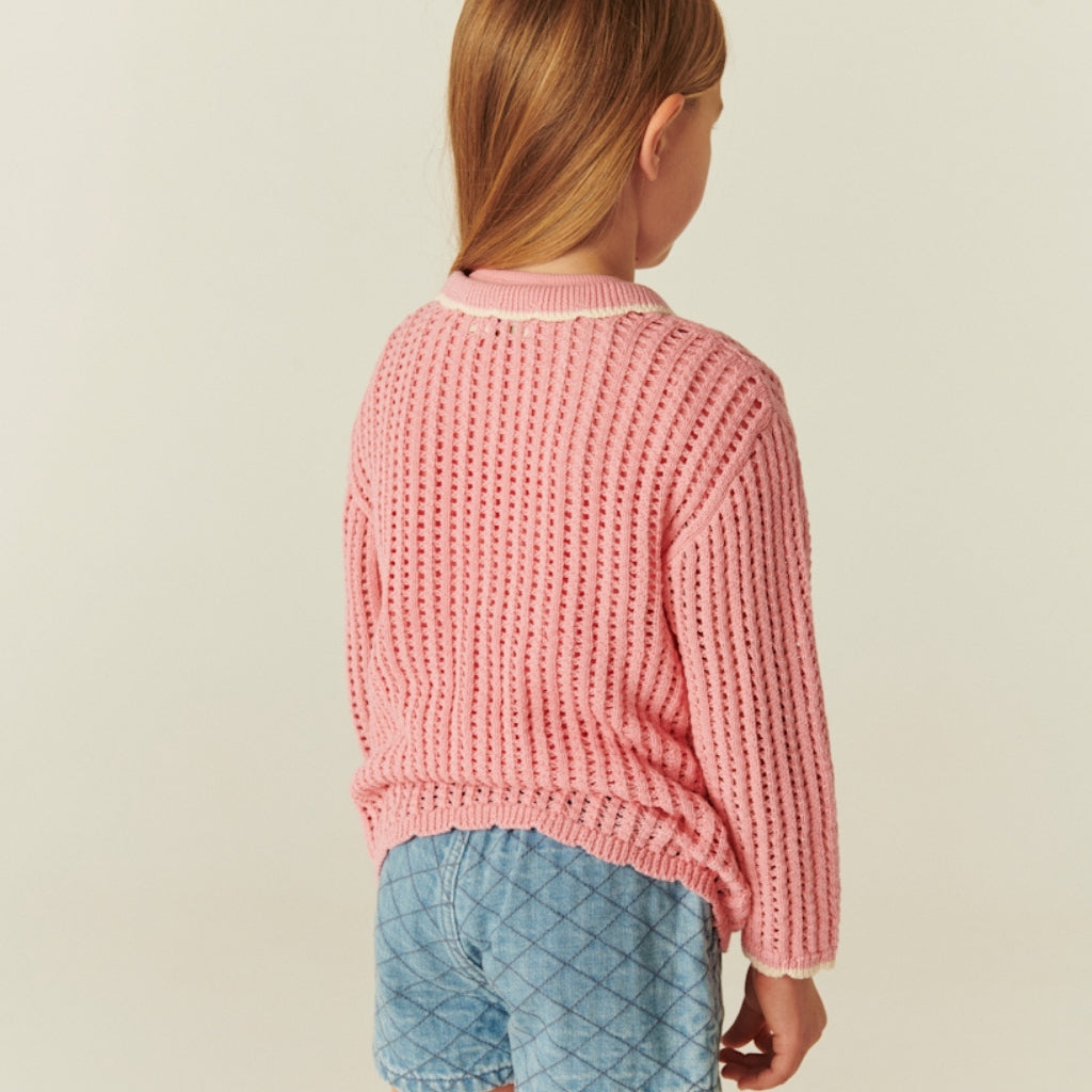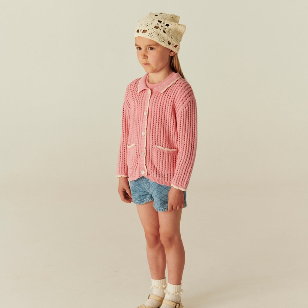 Pink Crochet Cardigan with Cream Detailing