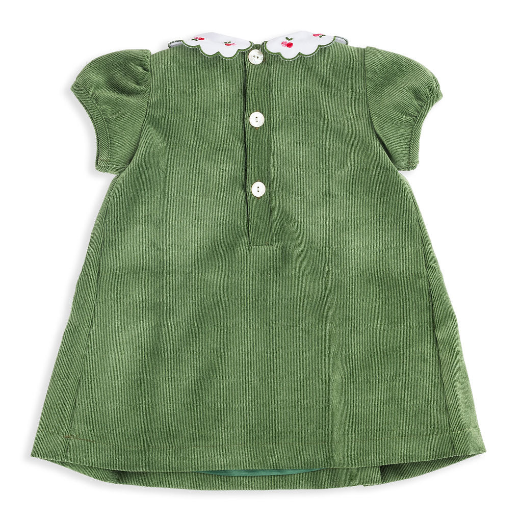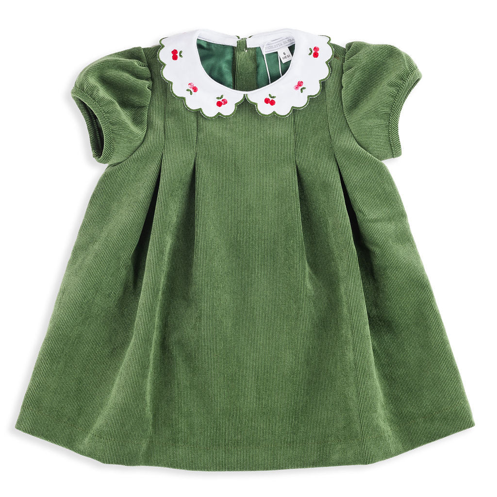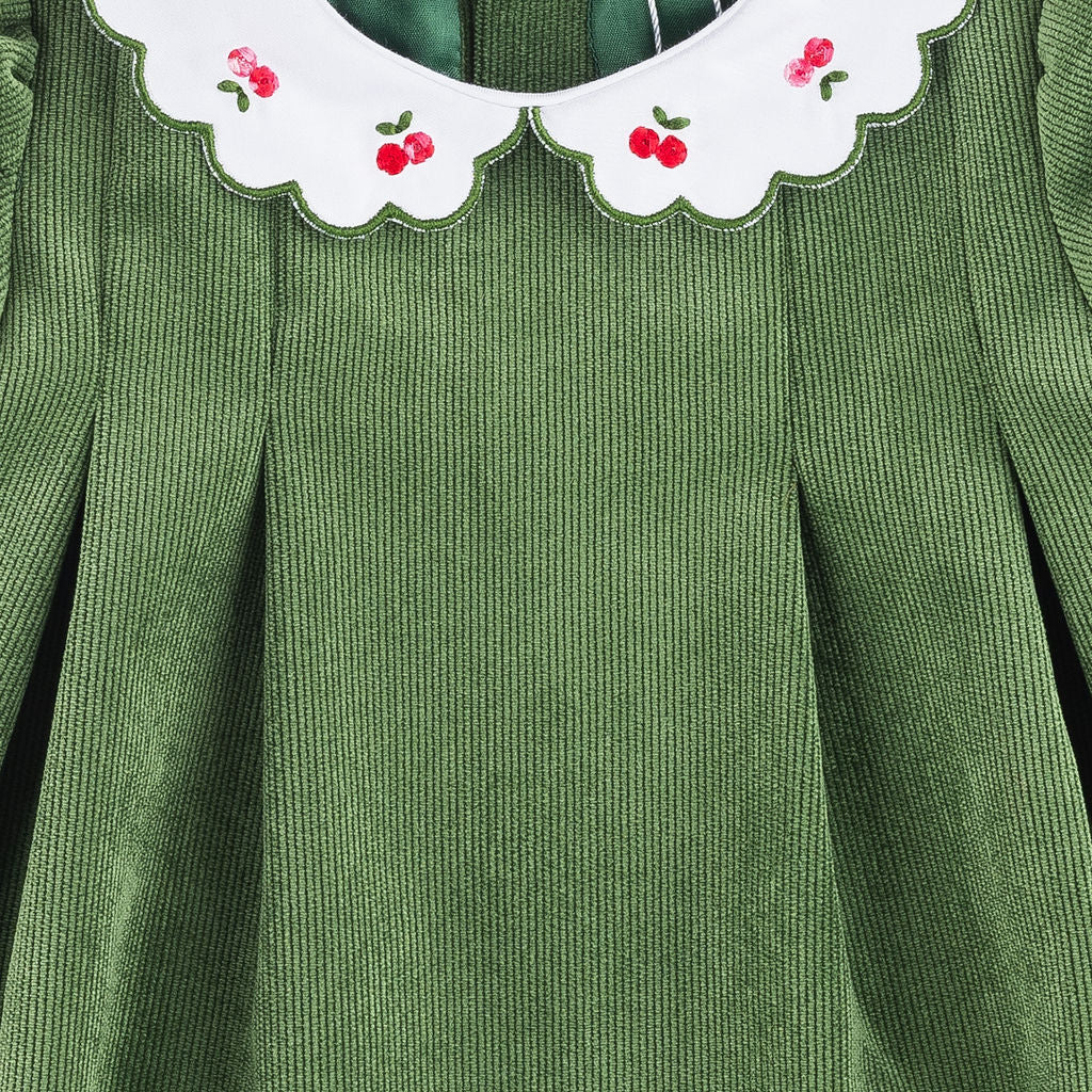 Dorian Corduroy Dress Green with Scallop Cherry Collar
