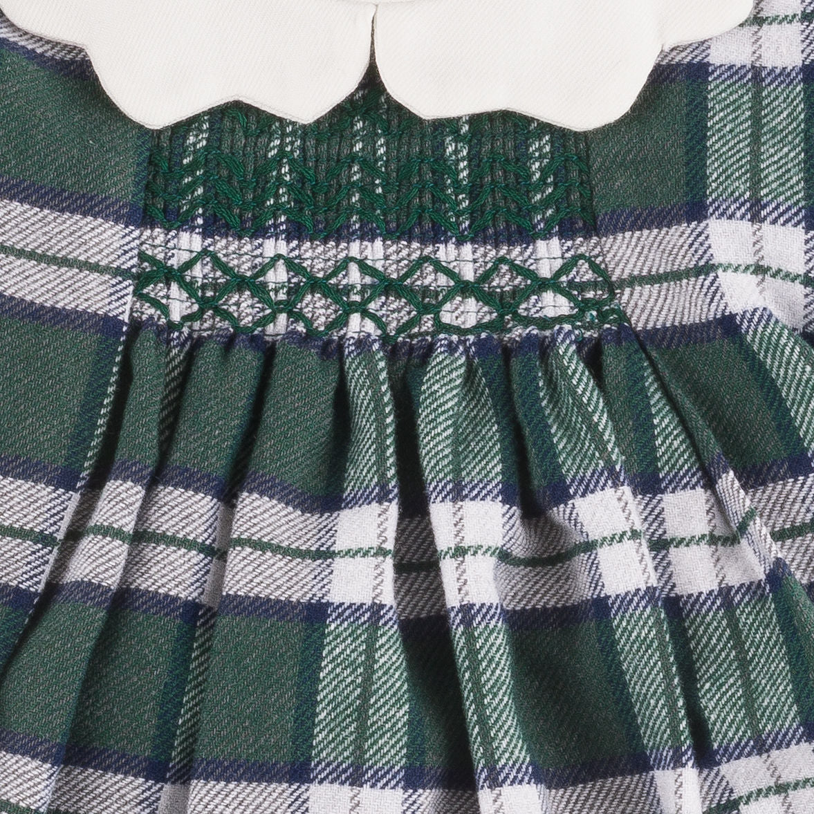 The Hollis Green and Navy Tartan Holiday Dress blends classic sophistication with cozy charm, featuring a gorgeous tartan print, collar, and smocking. Perfect for special occasions or stylish everyday wear, it offers both comfort and timeless appeal.