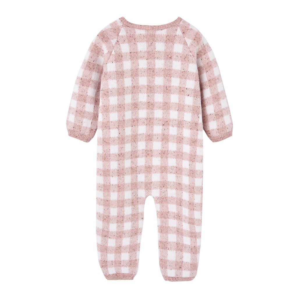 Wrap your little one in warmth with this soft pink and white checkered knit romper, featuring a cozy texture and full front button closure for easy changes. Its sweet design and gentle fabric make it a perfect choice for both comfort and everyday charm.
