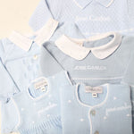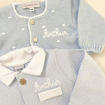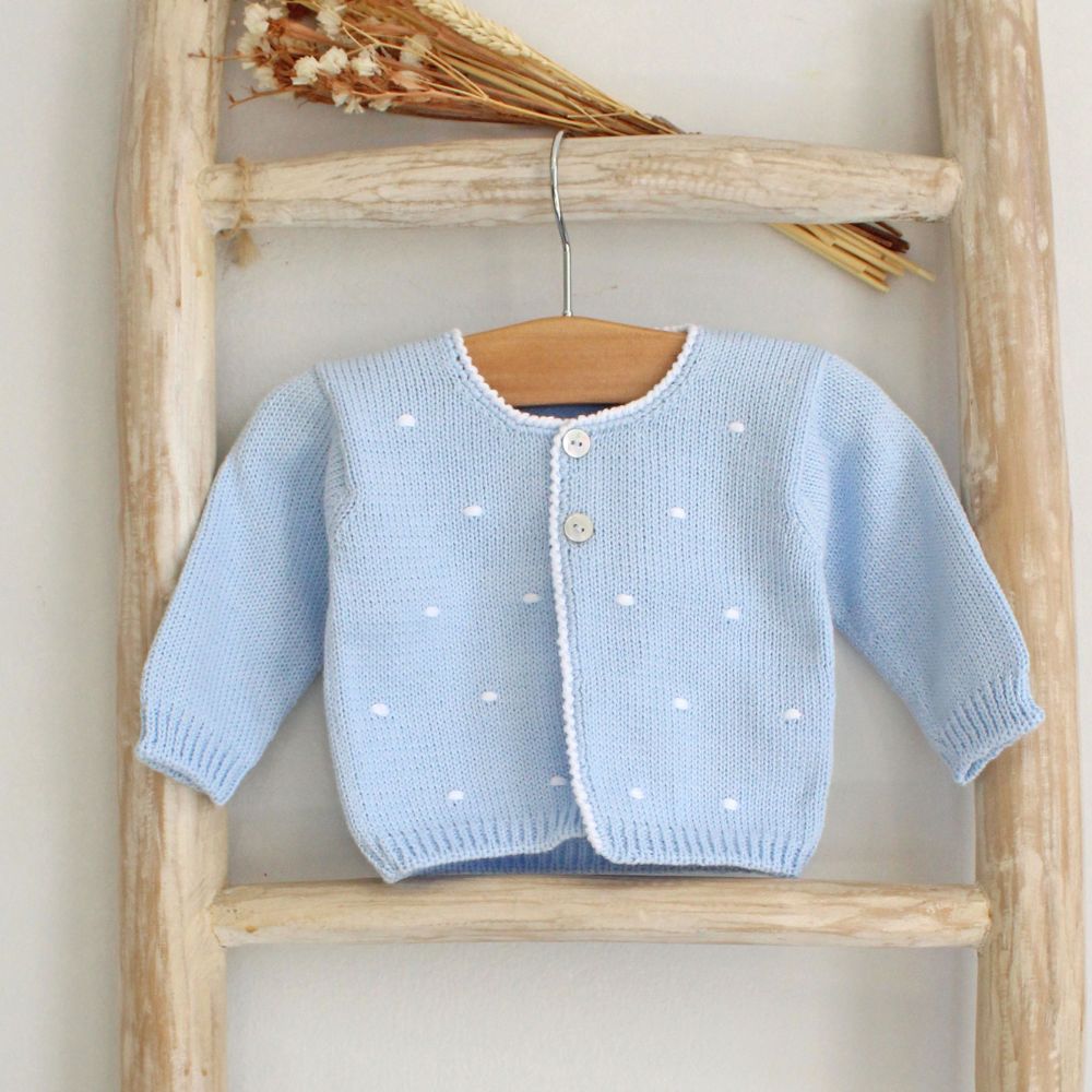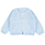 Byron Blue Knitted Cardigan with Hand Embroidered White Dots