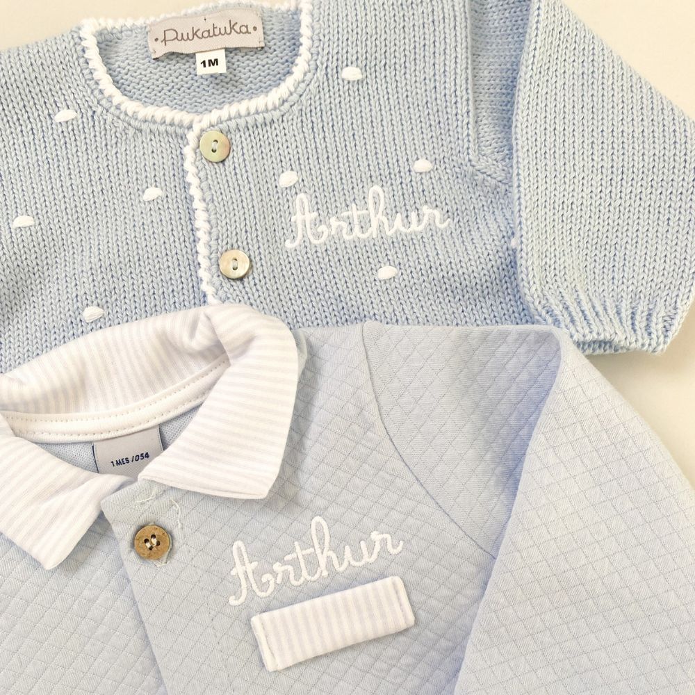Soft Knitted cardigan with hand embroidered white dots in a thread blend specifically designed with babies and small children in mind in order to avoid fur release and allergies. 50% wool/50% acrylic. This is a rare European brand that runs a bit large in size. For example, if your child is typically a 5, we suggest selecting a size 4 in Pukatuka. The body of a Pukatua romper, bubble, or dress usually runs longer too.
