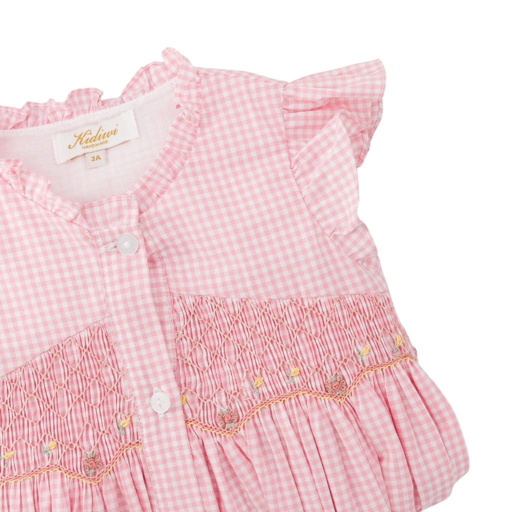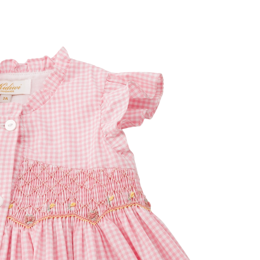 Lolyne Smocked Dress in Candy Pink Small Gingham