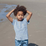 This boys top runs true to size and comes in a baby and big boy version. The boys pairs perfectly with Danny Striped Short for a casual beachy look, or for babies, pair it with the powder blue gingham bloomer!