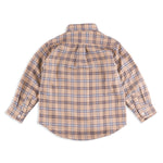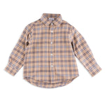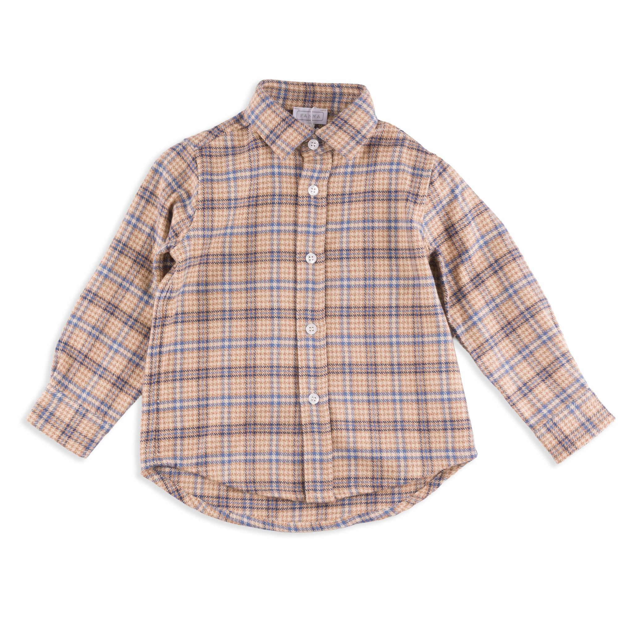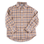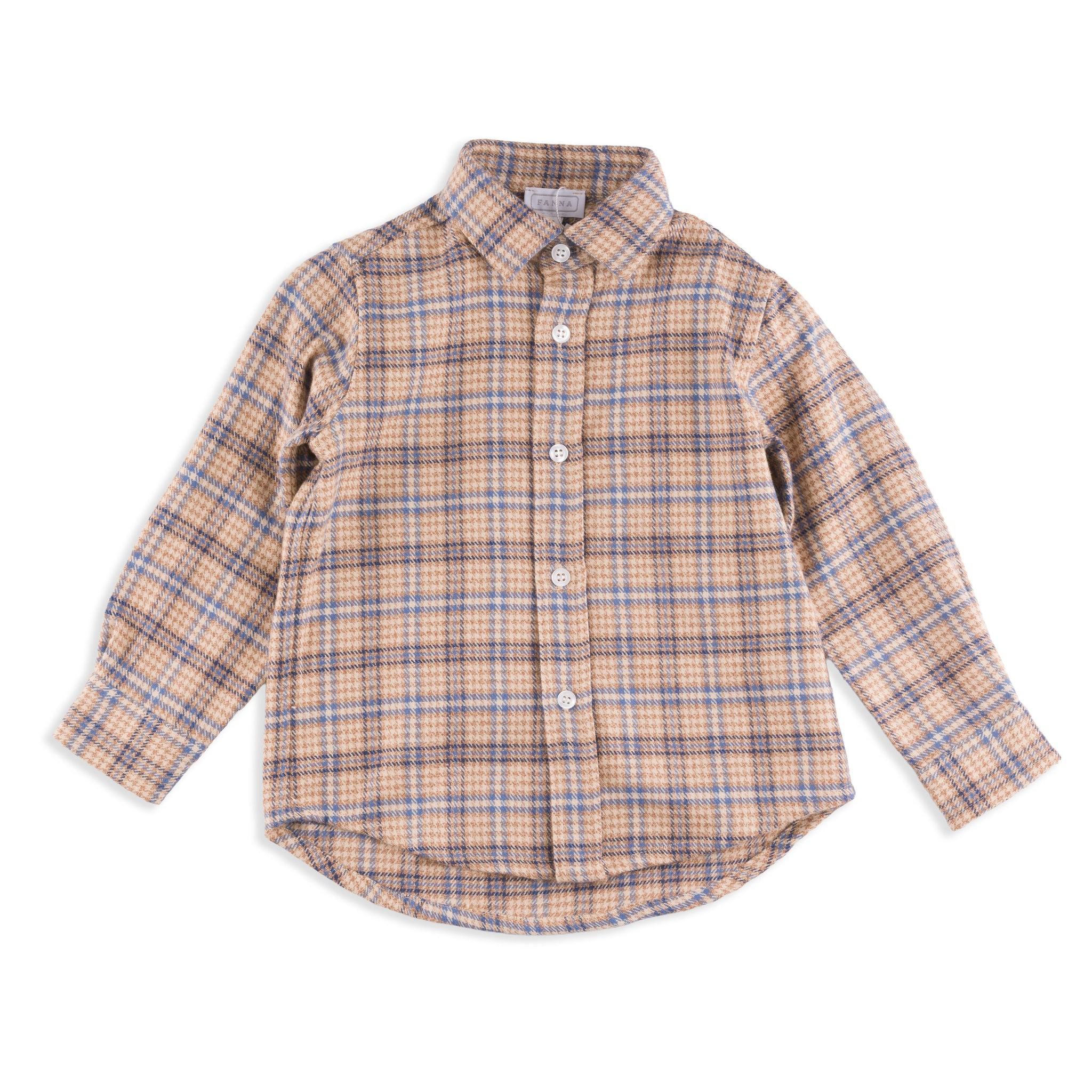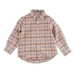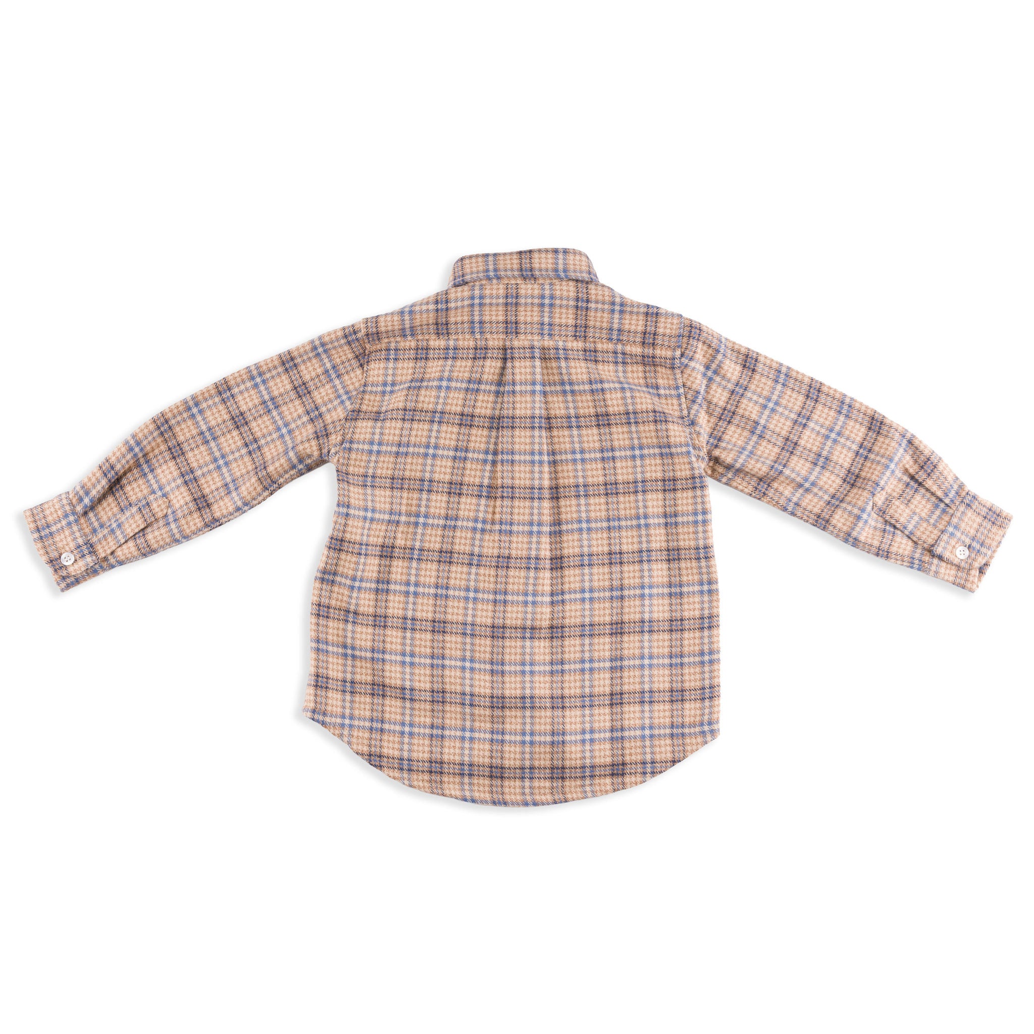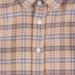 The Hudson shirt features a soft, woven fabric with a timeless beige and blue plaid pattern. With its classic cut and long sleeves, it’s a versatile staple perfect for layering or wearing on its own.
