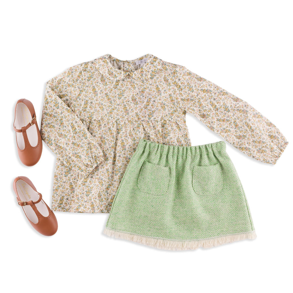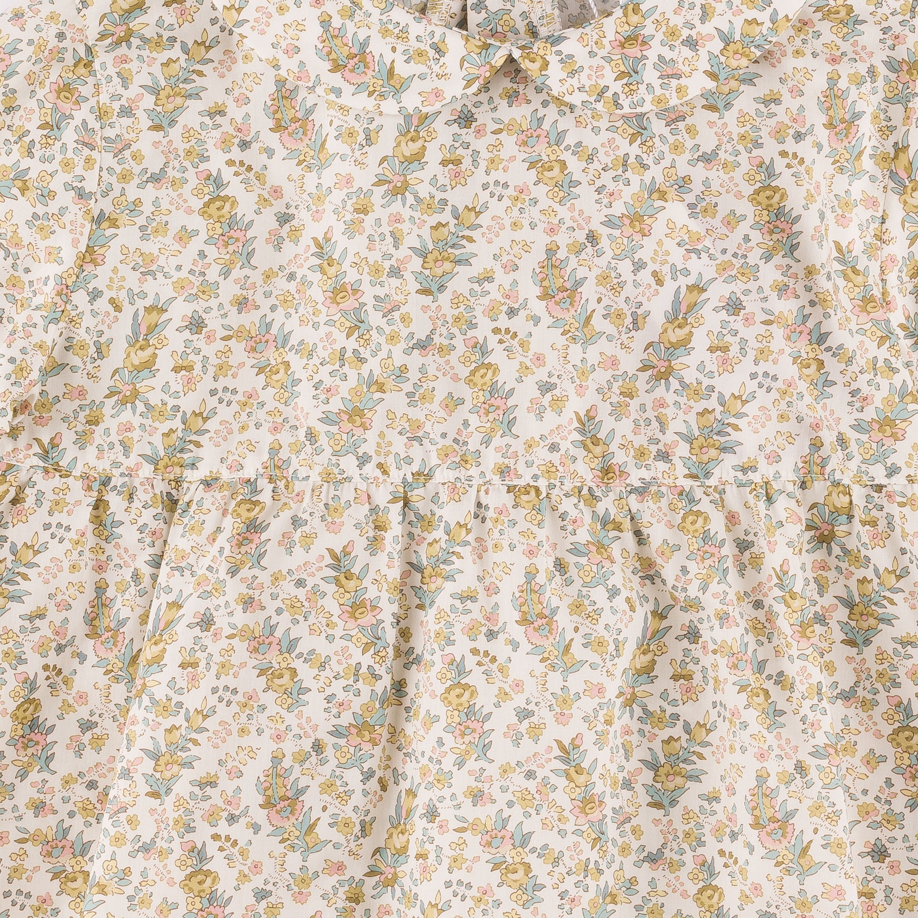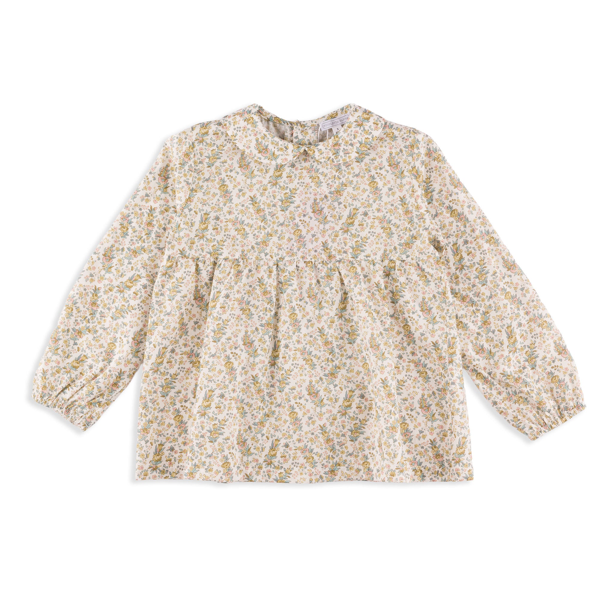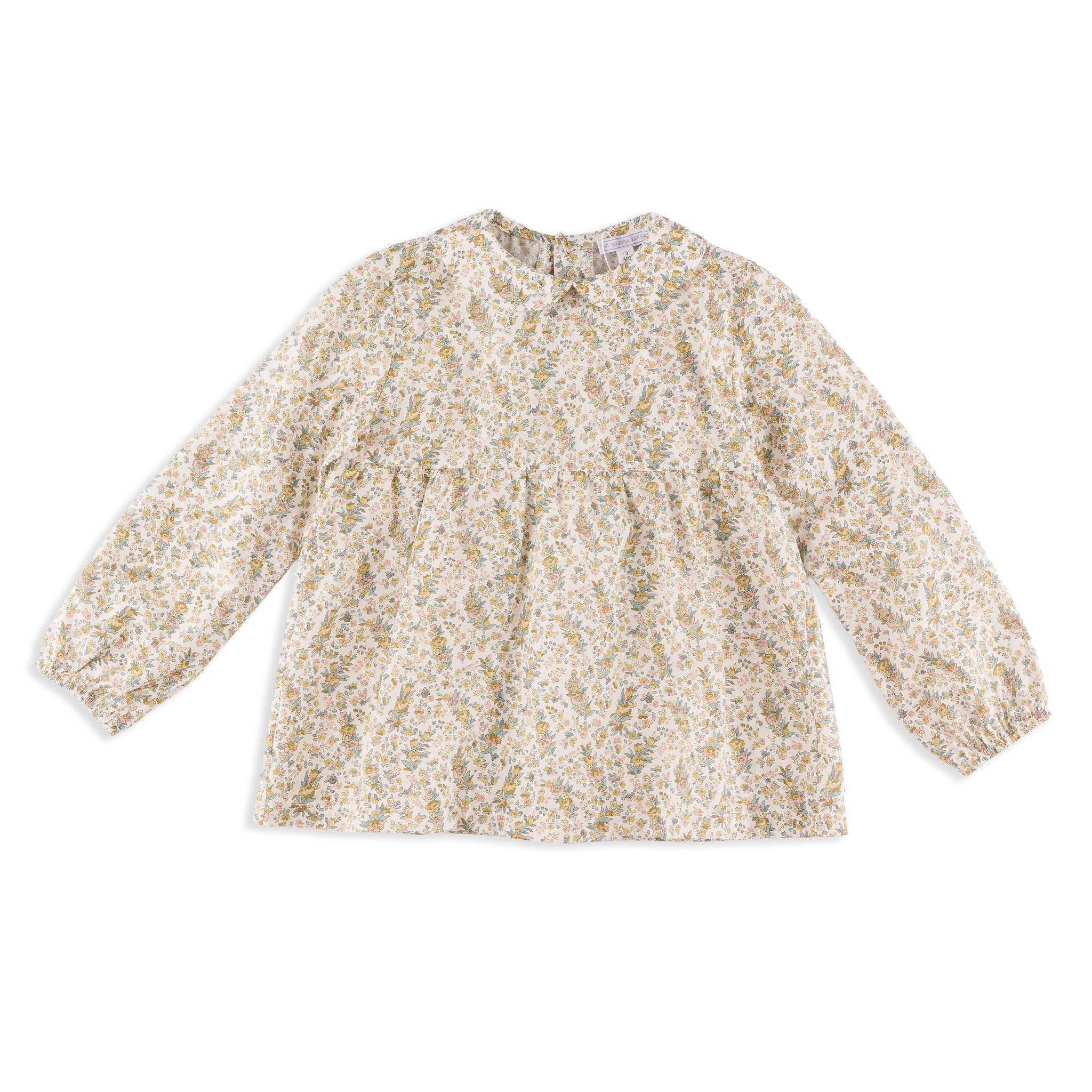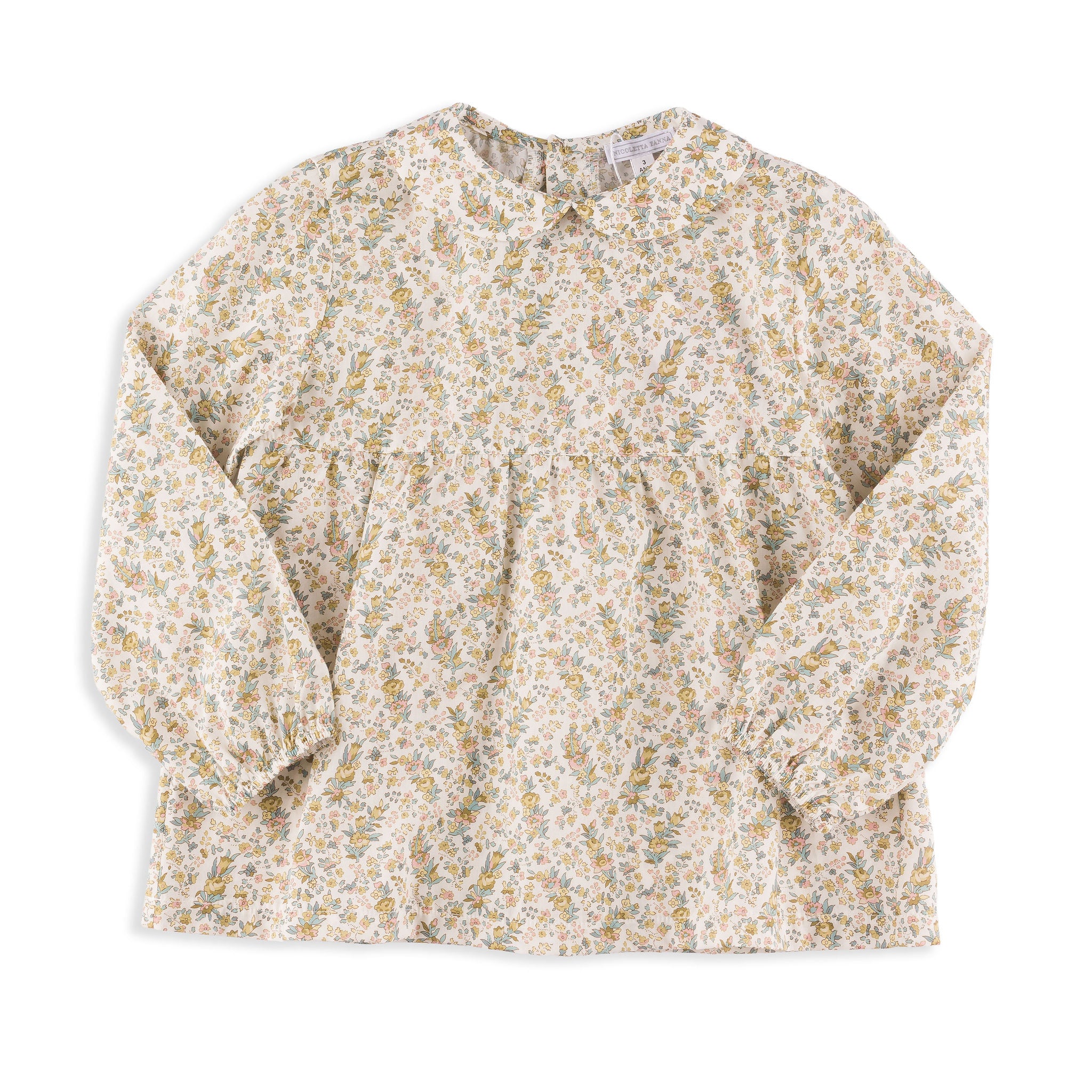 The Milly Blouse showcases a delicate floral pattern in warm, earthy tones, beautifully complemented by a classic rounded collar. Crafted from soft cotton, it’s a timeless piece perfect for layering or wearing on its own for a sweet, vintage-inspired look.