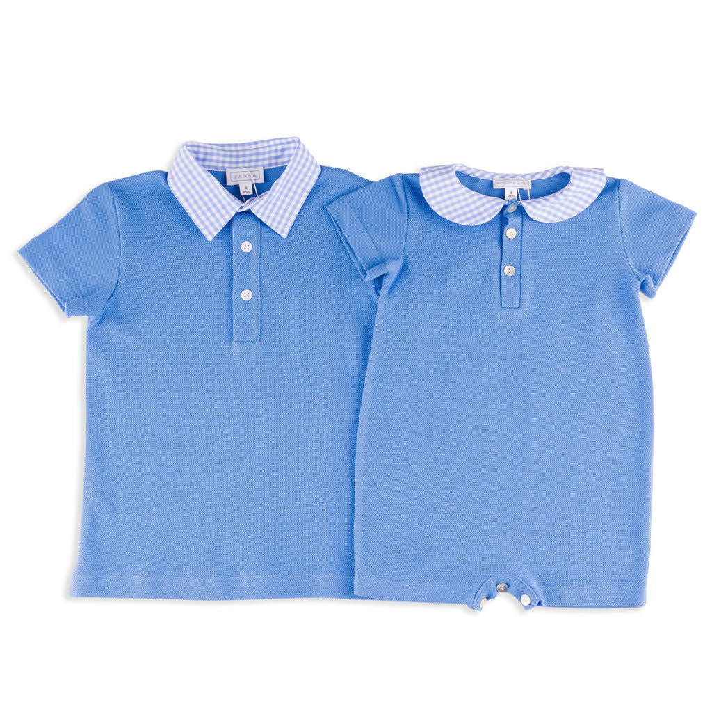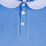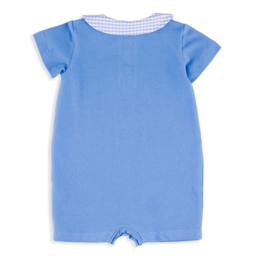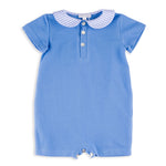 Ortica Blue Pique Romper with Gingham Collar