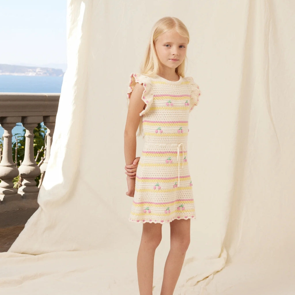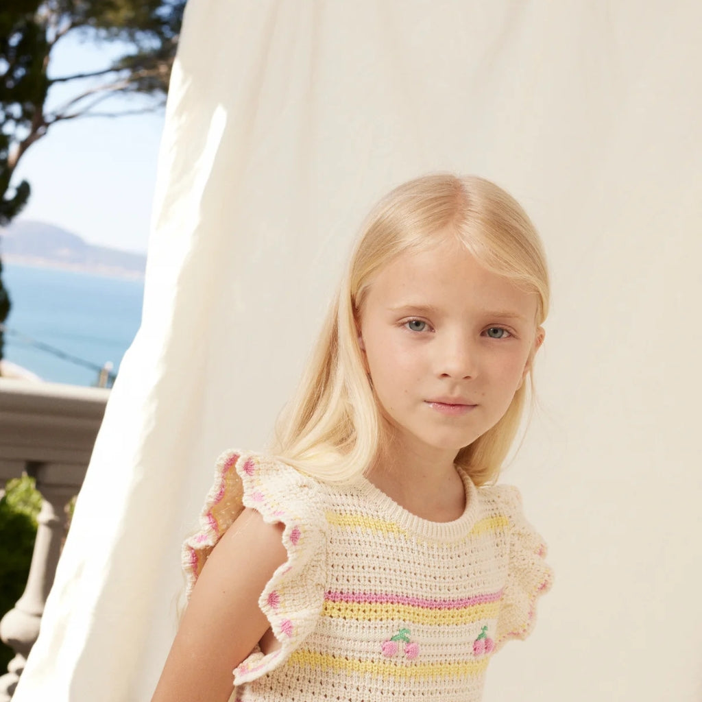 True to size/bordering on generous. The Paloma Dress in Cherry Stripe is a breezy, nostalgic piece featuring cheerful red stripes and a timeless silhouette. Crafted from soft, lightweight fabric, it’s perfect for sunny adventures and everyday play. Composition: 100% Organic Cotton.