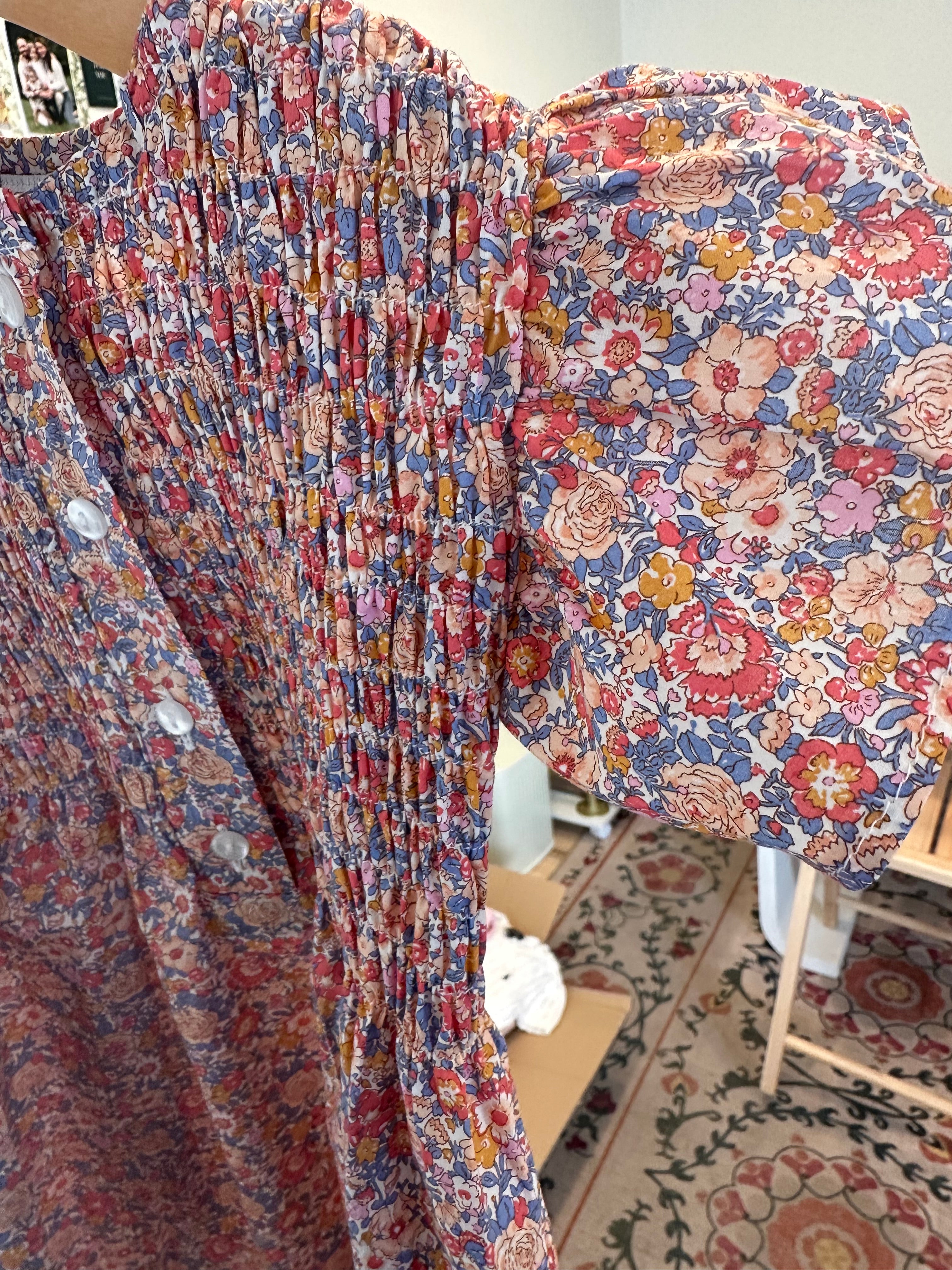 Poppy Dress in Red, Marigold + Blue Floral