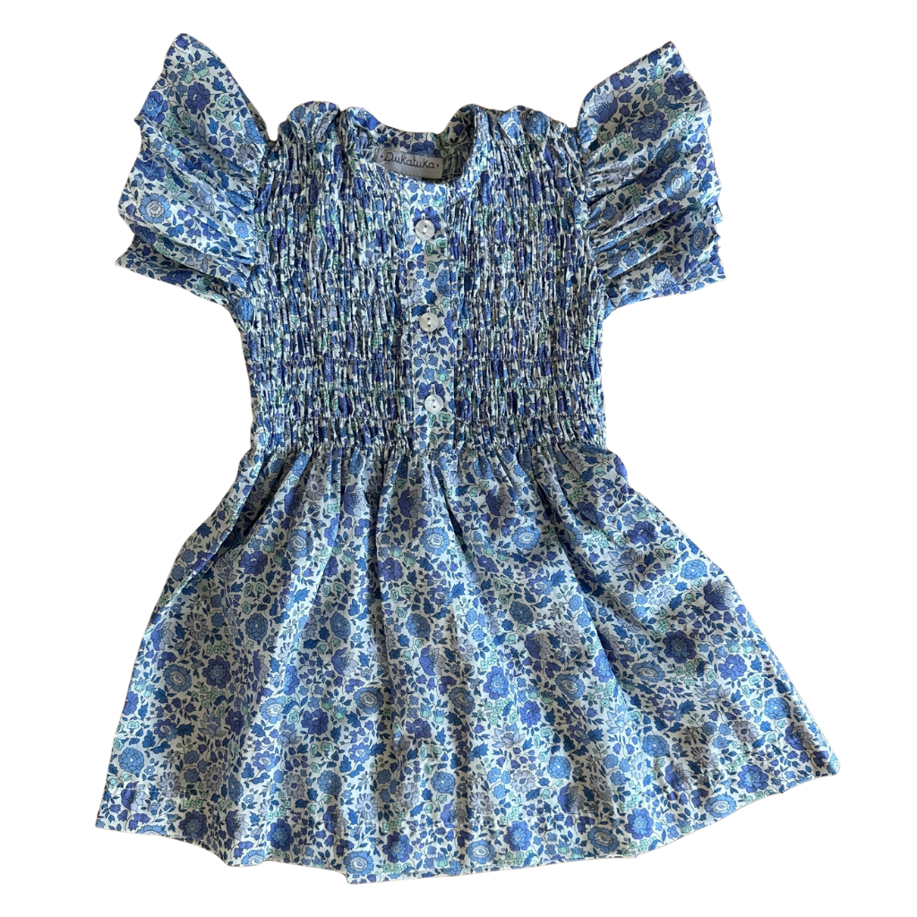 The Poppy Dress in Blue Serene Floral captures timeless charm with its soft blue hue and delicate floral print. Designed with a gently flared silhouette and subtle vintage details, it’s a perfect piece for sunlit days and special moments alike.