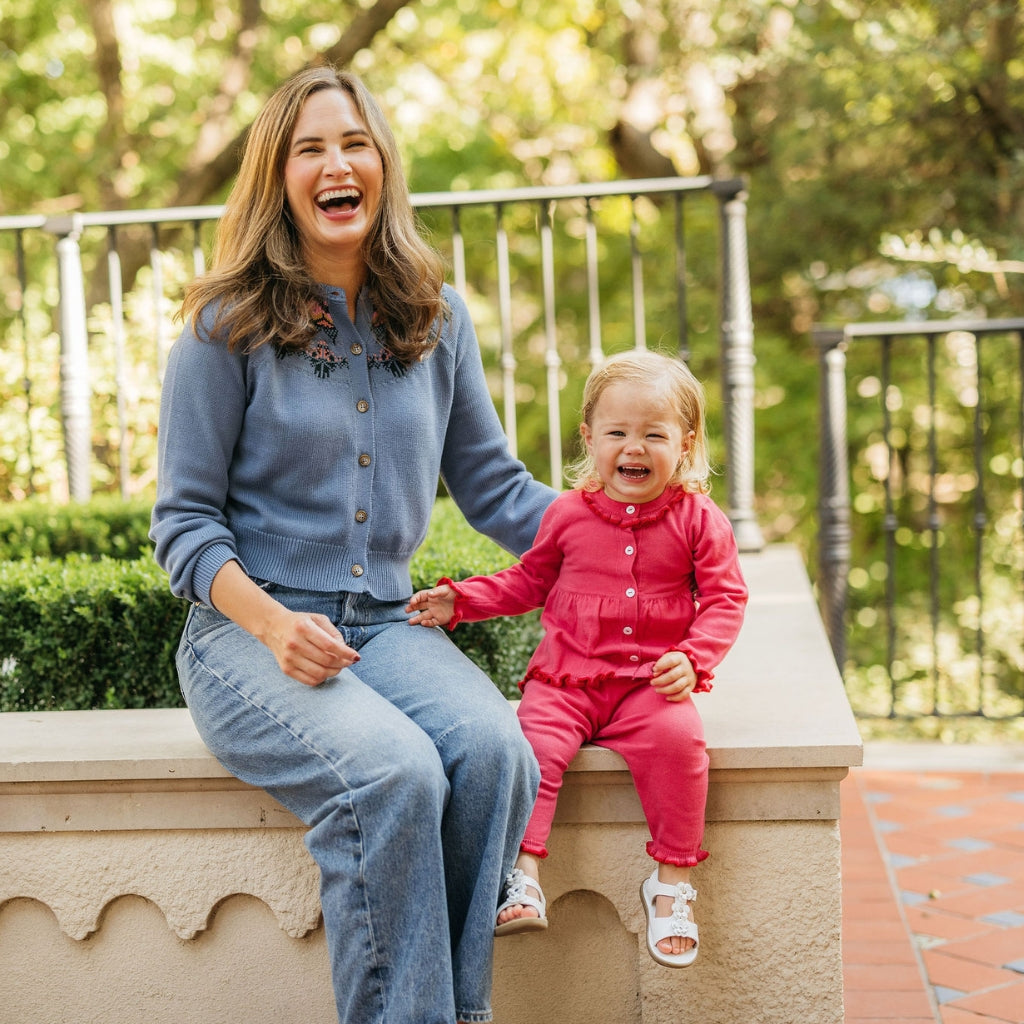 Meet the Cortina Cardigan: A classic with a touch of charm, this knit cardigan is crafted in a soft wisteria blue and features a beautiful fairisle design in vibrant shades of pink, marigold, and dark green. The scalloped neckline and delicate button front bring a refined sweetness, while the cozy weight makes it as practical as it is beautiful. Perfect for layering through the season, it’s a piece that transitions seamlessly from everyday wear to special occasions. The Cortina Cardigan pairs beautifully with high-waisted jeans or a skirt on its own, and also layers effortlessly over a dress or top. Expertly crafted in Tuscany, this dress is made from 100% cotton. Matches perfectly with the Kids Cortina Fairisle Cardigan if you want to coordinate with your little!