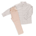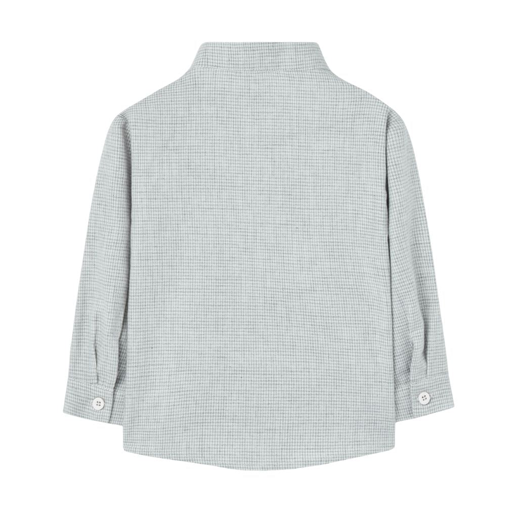 Sage Pearl Check Collarless Buttondown Shirt