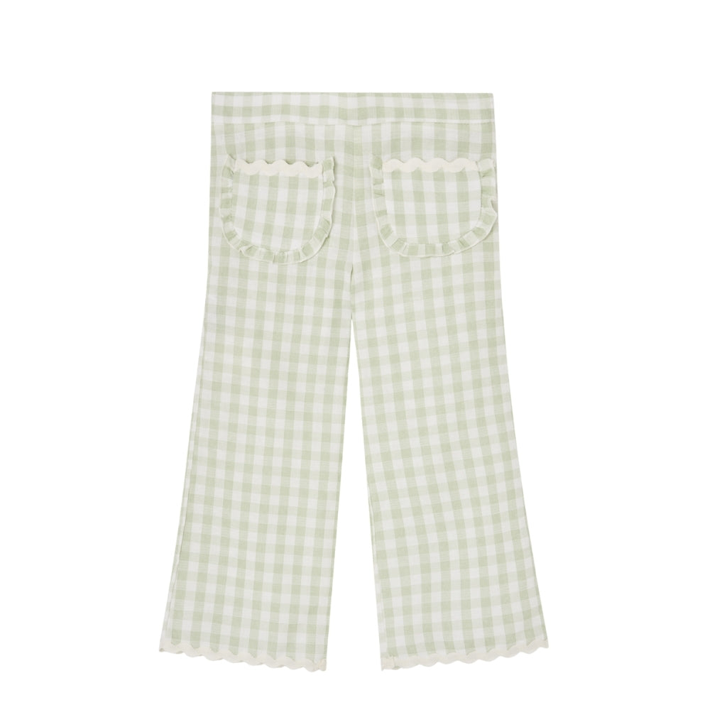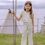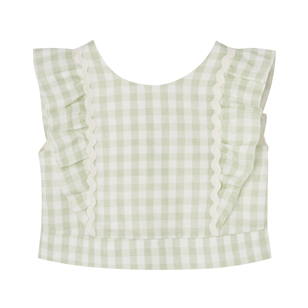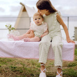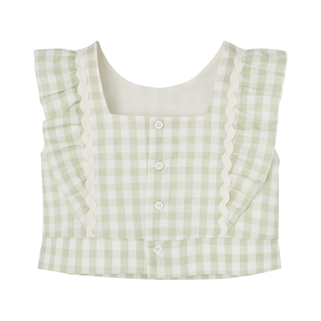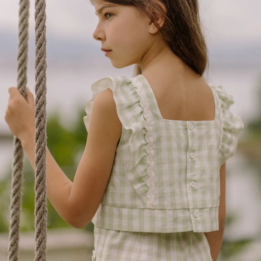 The Woven Set in Green Gingham is crafted from lightweight, breathable fabric, keeping your little one comfortable all day. Its classic green gingham pattern adds a fresh, timeless charm to any outfit.